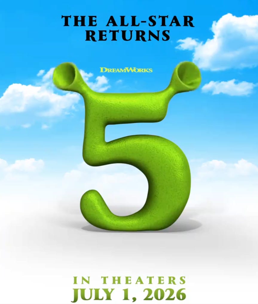 👹 Shrek 5 will release in theaters on July 2026, says Dreamworks