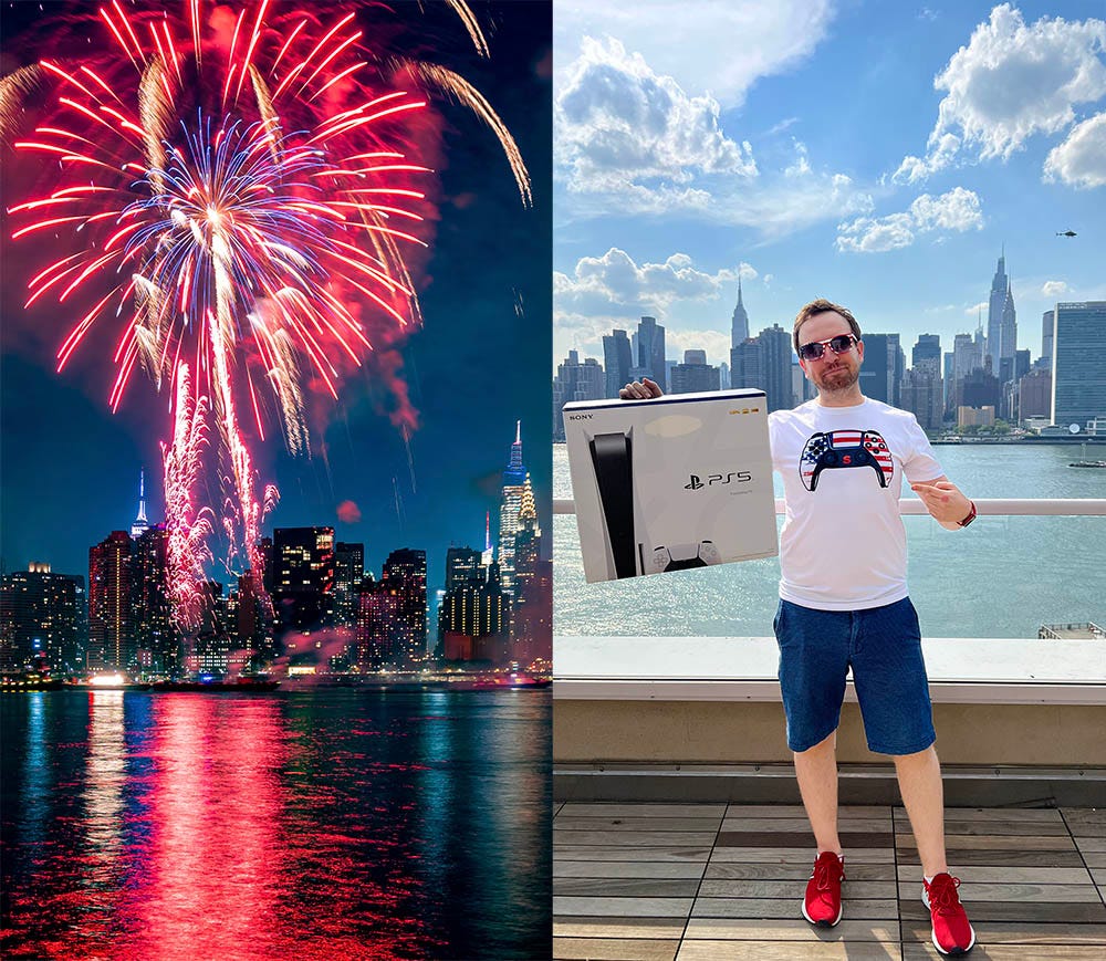 During the 4th of July, I’m giving away lots of stuff while I’ll livestream the spectacular NYC fireworks on YouTube and Instagram (right before and right after the fireworks so that you can enjoy the beautiful sight of the Manhattan skyline uninterrupted).