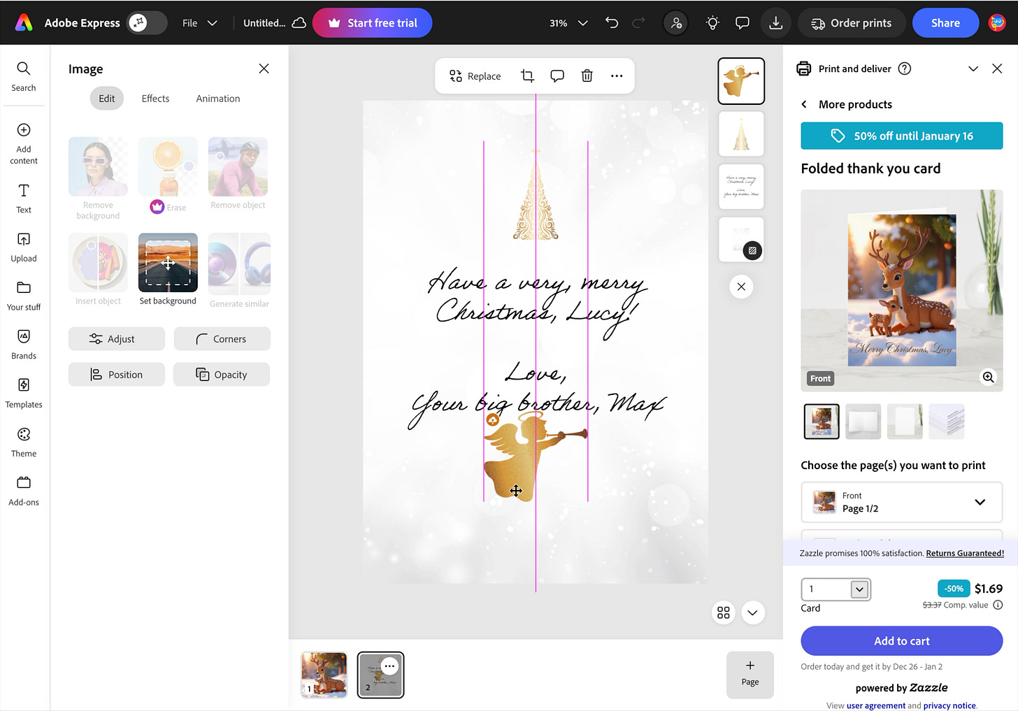 Once you choose the image that speaks to you most, you can then click on the Edit tab at the top to edit your image, add text, and more. I wanted to add a personal Christmas message to the front, and here’s how I pulled it off.