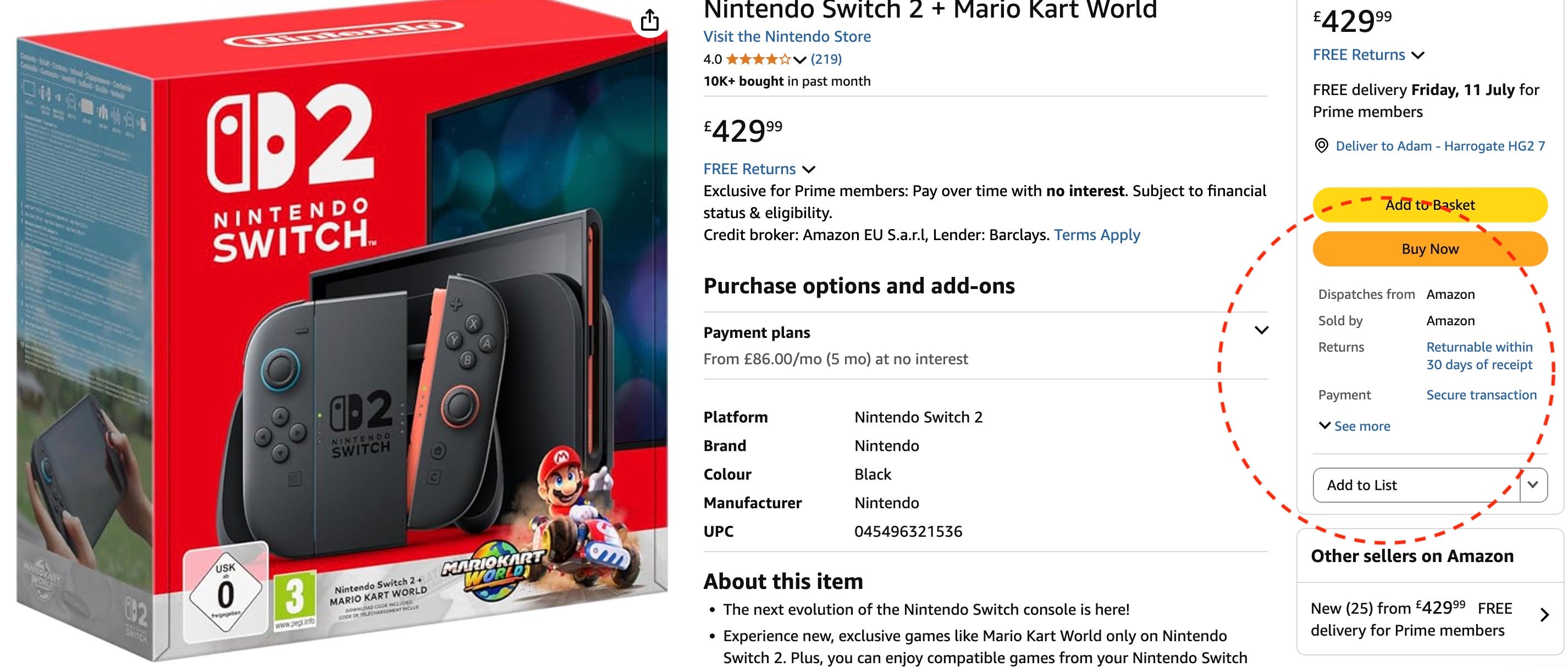 And that’s because Amazon and Nintendo have had a long running dispute that saw Nintendo pull its hardware and games from the retailer in March 2024. It’s also why you couldn’t find a Nintendo Switch 2 pre-order at Amazon, or any of Nintendo’s first-party offerings like Mario Kart World for sale.