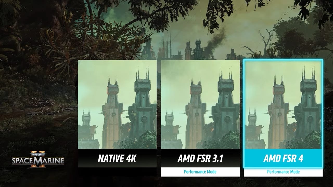 08:21 ET: You can see the difference FSR 4 makes compared to FSR 3.1 in Space Marine 2. You might have to zoom in, but the difference is there.