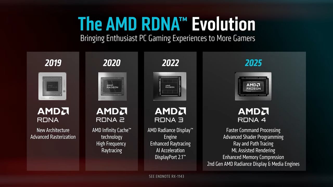 08:05 ET: McAfee says these are the three pillars AMD designed its RDNA 4 cards around. Seem like good goals to have!