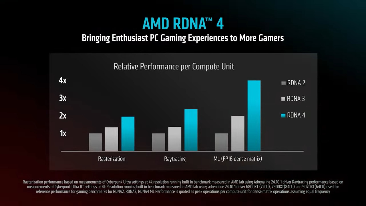 08:15 ET: Pomianowski is leaving us with a nice chart that shows the improvements RDNA 4 offers. It’s a big leap, though we always have to take these charts with a pinch of salt.
