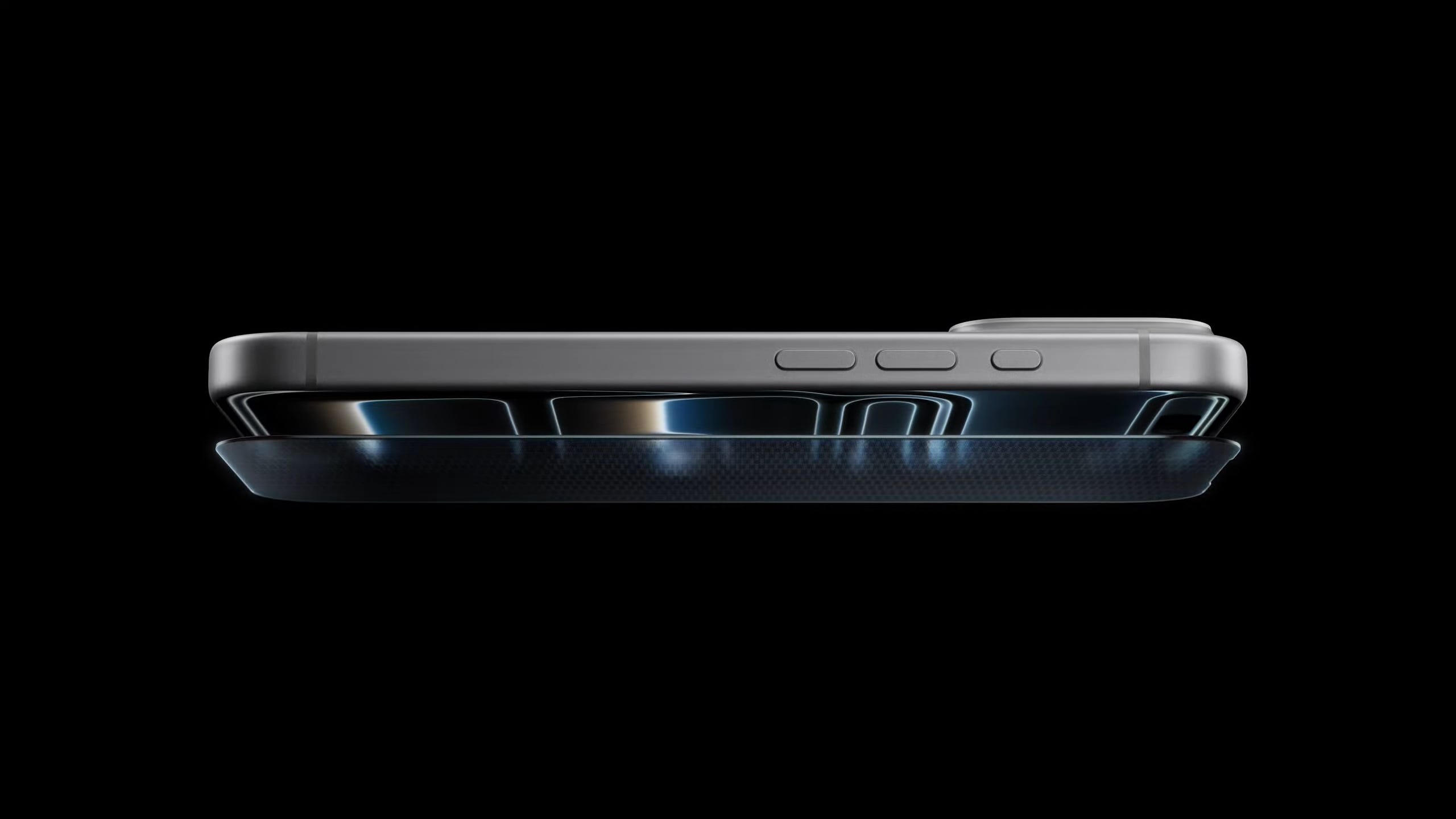 01:44 PM: Huh. Apple moved a bunch of stuff to the top “plateau” to fit everything. Made from titanium, has a 6.6-inch ProMotion display, and it’s covered in Ceramic Shield 2. This thing look stunning.