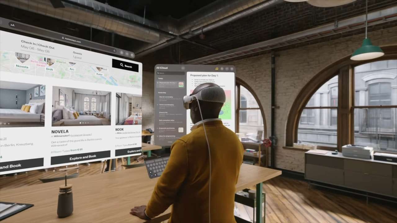 When wearing your Apple Vision Pro, you can see all of your apps within your personal space and the headset transforms your surroundings using virtual environments and floating, resizable screens.