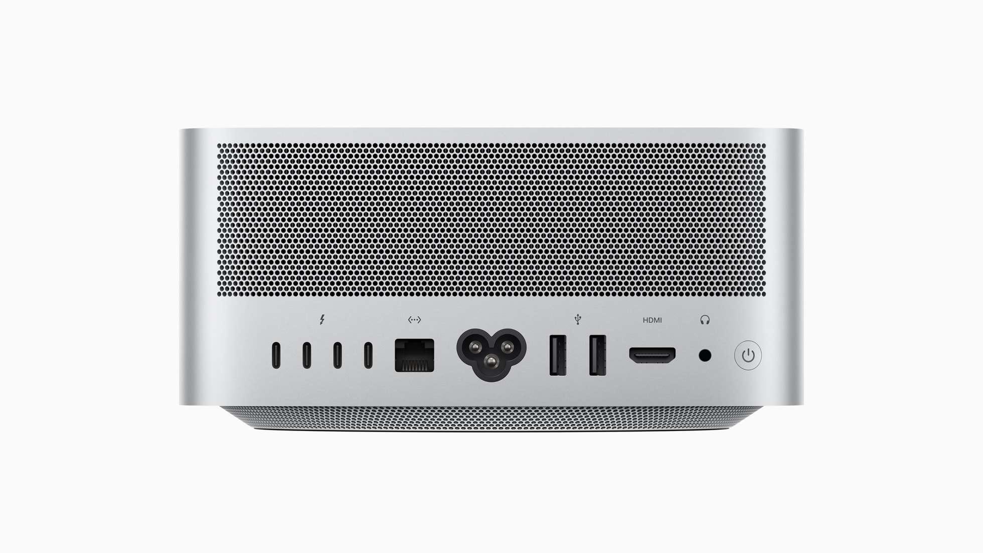 For inputs, Apple ditched Thunderbolt 4 for Thunderbolt 5. Thunderbolt 5 offers up to 120 Gb/s transfer speeds and overall performance improvements for external accessories. Additionally, the Mac Studio also has a 10Gb Ethernet port, two USB-A ports, an HDMI port, and an SDXC card slot on the front to conveniently import photos and video. It also has built-in Wi-Fi and Bluetooth.