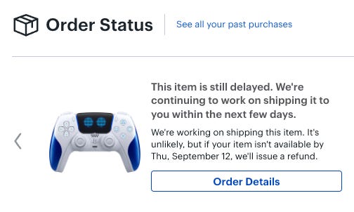 If you did order from Best Buy, you may have received an email notifying you of a delayed order. That’s how it started for me. That delayed order status then turned into a full-on Astro Bot controller order cancellation within 24 hours. Not willing to risk it, I then ordered the PS5 controller from Walmart.