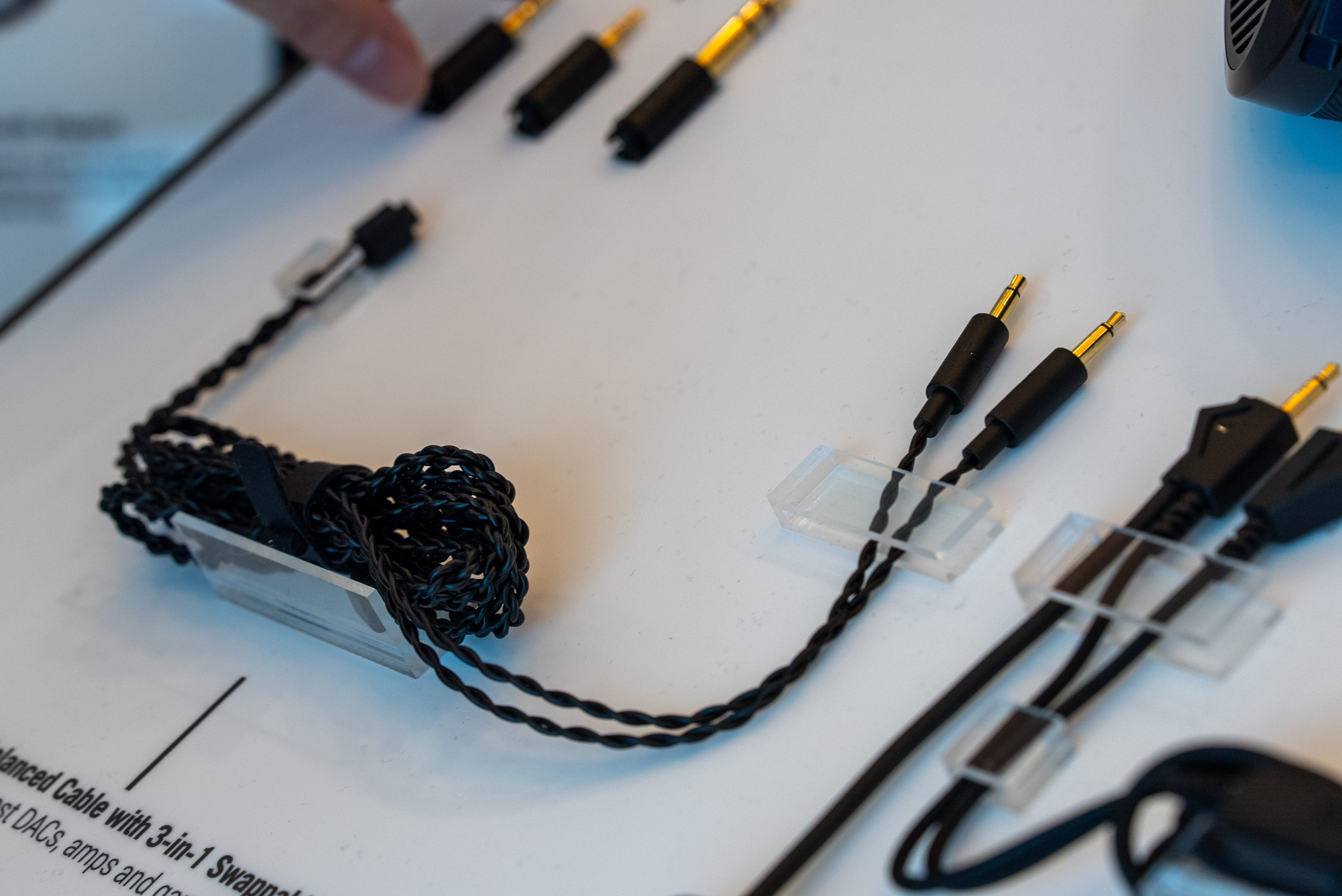 👜 Accessories. The Asus ROG Kithara comes with a box full of accessories, including a balanced 4.4 mm cable, 3.5mm and 4.4mm single-ended plugs, a USB-C adapter, and two braided cables, including a shorter one with a built-in microphone. Those different cables and connectors make it easy to plug this headset into an audio DAC and enjoy lossless audio. So you can use it as a pair of audiophile headphones on top of a gaming headset.