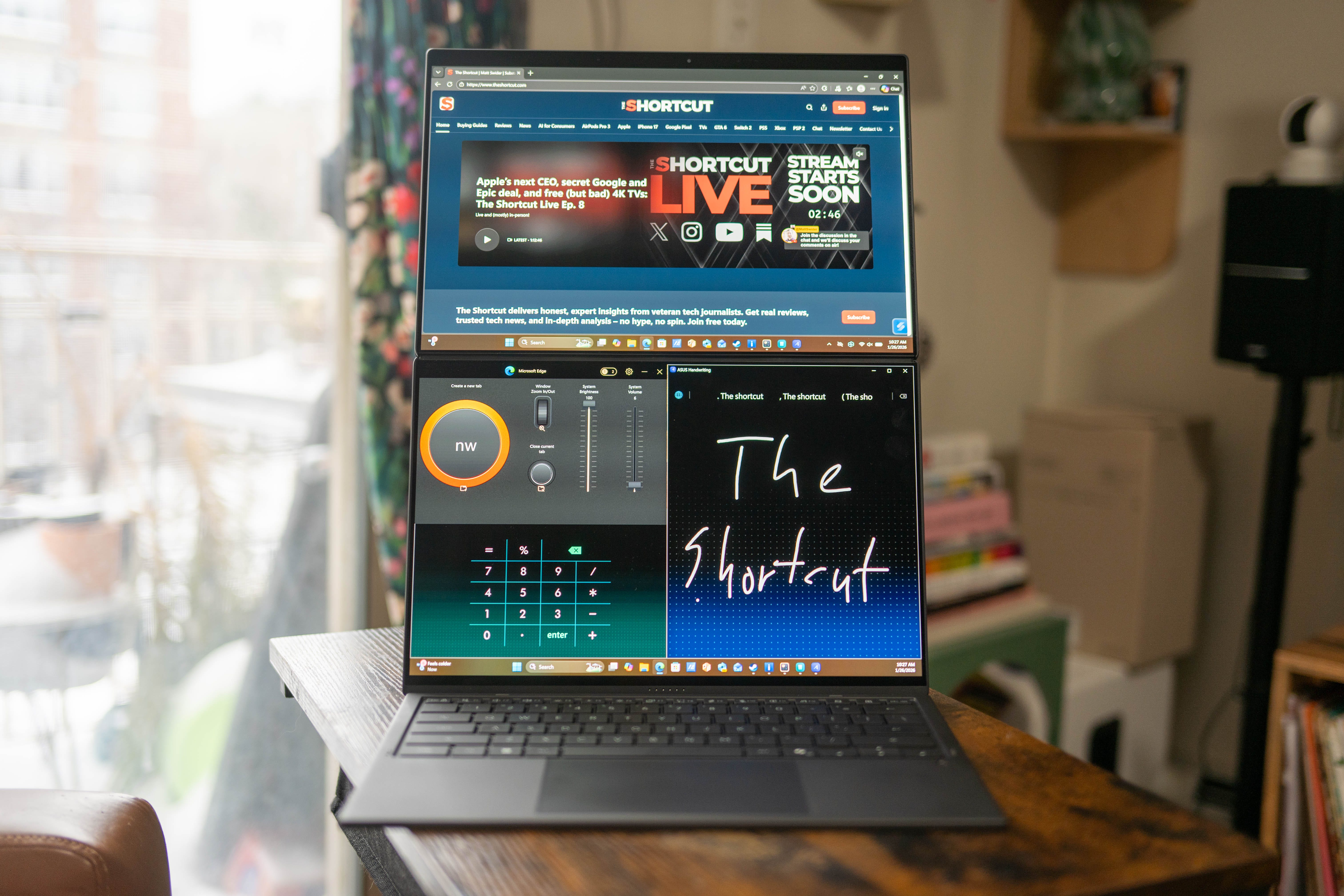 Alternatively, Asus has a few built-in widgets for handwriting, a control panel, and a calculator. You can also set up custom templates to auto-launch apps and arrange them automatically. While working, I’ll have the second display set up so I can write notes, change settings on the fly, and keep a calculator handy. For gaming, I can use the second screen display the Intel graphics metrics and watch Twitch.