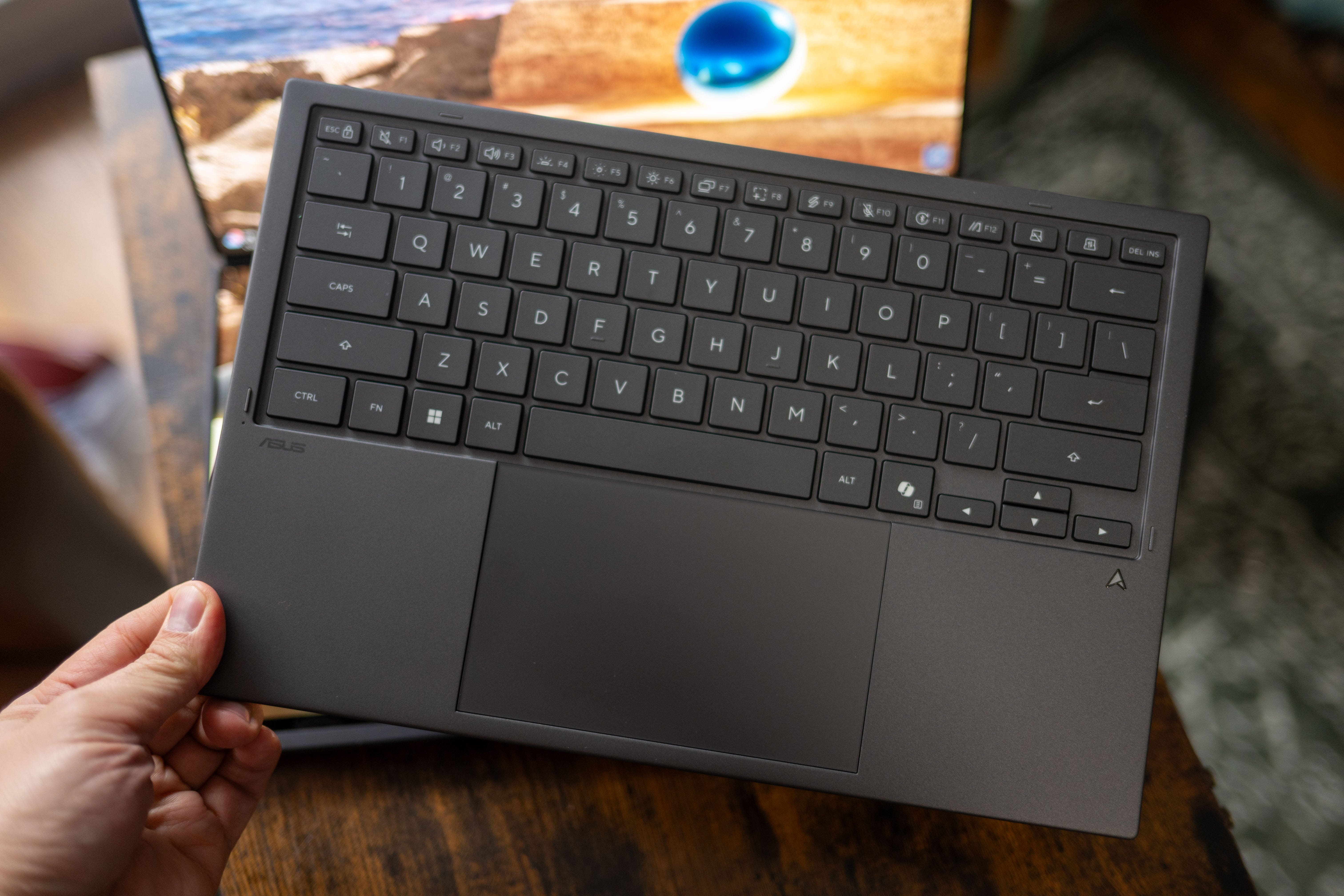 ⌨️ Great detachable keyboard. One of my favorite improvements to the Asus ZenBook Duo is its detachable Bluetooth keyboard. It’s a tiny bit slimmer than its predecessor, but it offers a deeper 1.7mm key travel and a larger trackpad. Asus also improved the pogo pin connection by hiding them and adding magnets so they only pop up when you attach the keyboard.