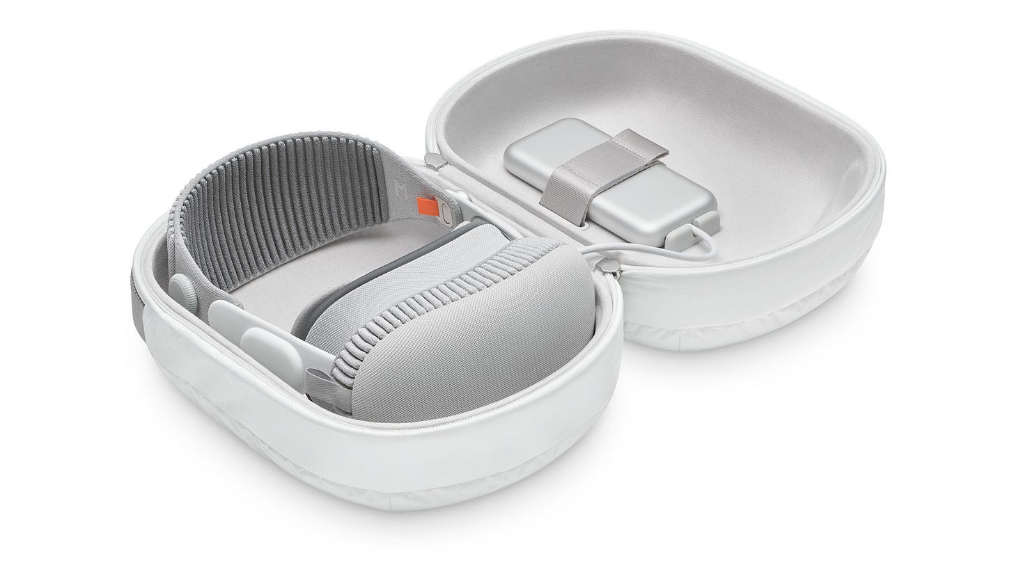Apple’s official travel case might look like a white space marshmallow from NASA and be as big as a pillow, but it affords the Vision Pro 360-degree protection with over an inch of padding in every direction. It’s spacious enough to fit the Vision Pro, battery, and a small bag of accessories while keeping everything in place with a pair of velcroed nylon straps.