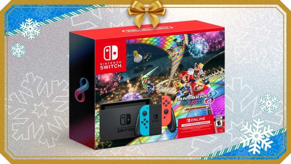 Nintendo Switch w/ Neon Red & Neon Blue Joy-Con + Mario Kart 8 Deluxe + 3 months of Nintendo Switch Online: