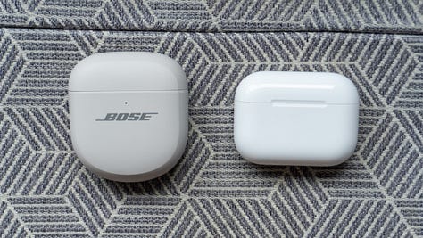 ⚡️ Finally, wireless charging. When it’s time to recharge, you have two choices: the USB-C port on the bottom or wireless charging. This is the first time Bose’s QC Ultra earbuds have shipped with wireless charging, and boy, is it about time. I’ve loved being able to set them down on the Qi charging pad at my bed to juice them up. It’s one of those conveniences you don’t realize you need until you have it, then you can’t live without it. Plus, I’ve tested a lot of earbuds with wireless charging, and Bose’s neglectful omission of the feature was too hard to ignore in the past.