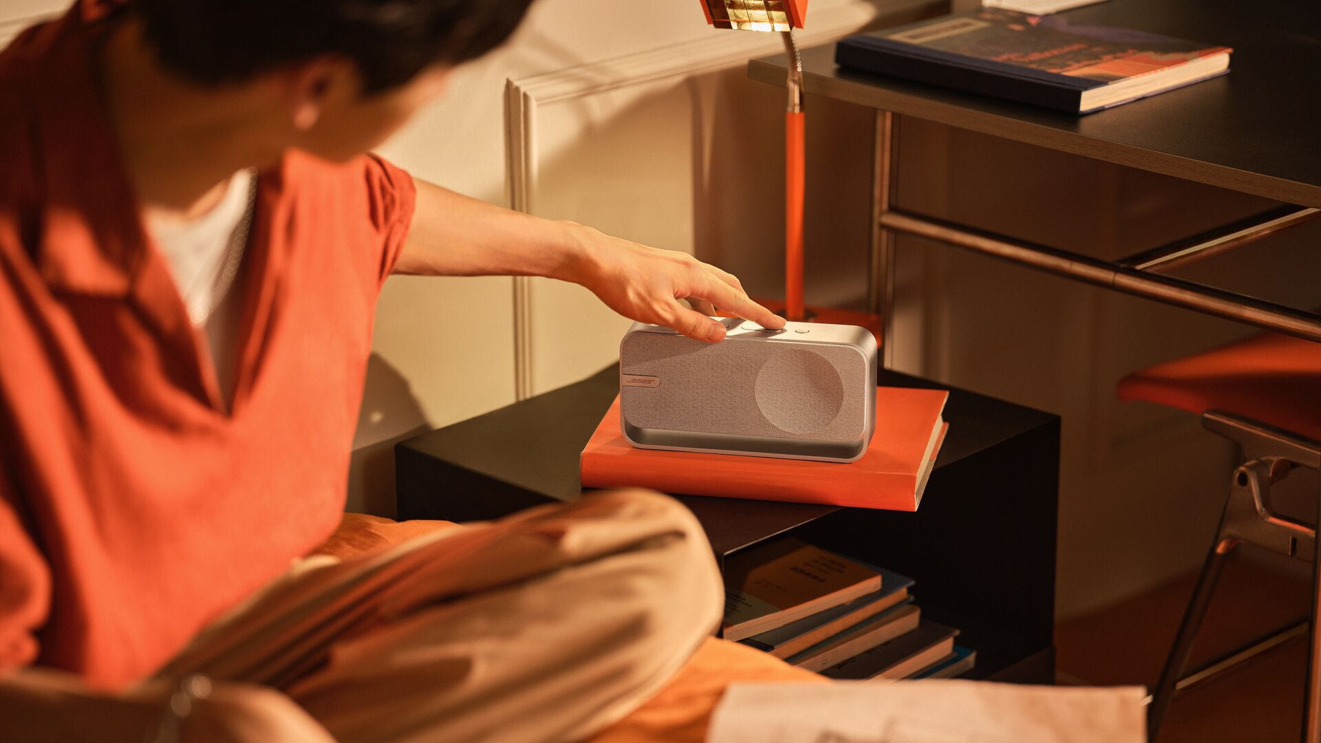 It oozes vintage style, with a sleek aluminum bar elevating the fabric-covered speaker unit for a clean yet snazzy look. Available in Light Silver or Cool Grey—disappointingly, there’s a wood option reserved for China only—this is one seriously attractive speaker.