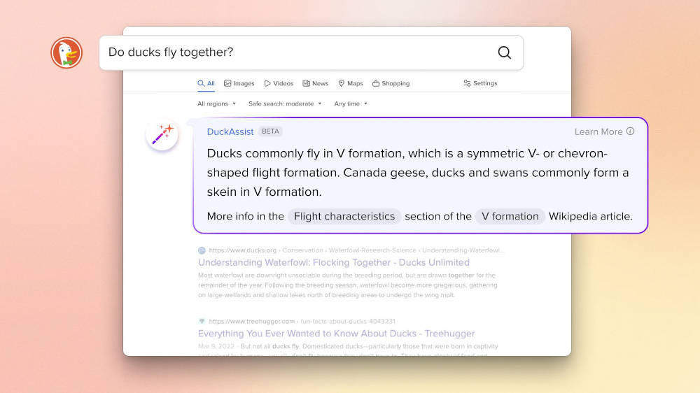 “This is the first in a series of generative AI-assisted features we hope to roll out in the coming months,” reads the post. “We wanted DuckAssist to be the first because we think it can immediately help users find answers to what they are looking for faster. And, if this DuckAssist trial goes well, we will roll it out to all DuckDuckGo search users in the coming weeks.”