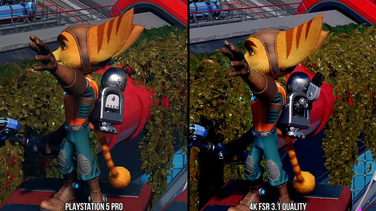 The footage shown of Ratchet & Clank: Rift Apart retained many of the same visual features from the gameâs existing Performance RT mode on PS5. The internal rendering resolution varies between 1440p and 1800p, with PSSR bringing the image quality up to 4K. Compared to the PC version, the PS5 Pro version is missing some graphical features like depth of field, increased crowd density, and increased level of detail.