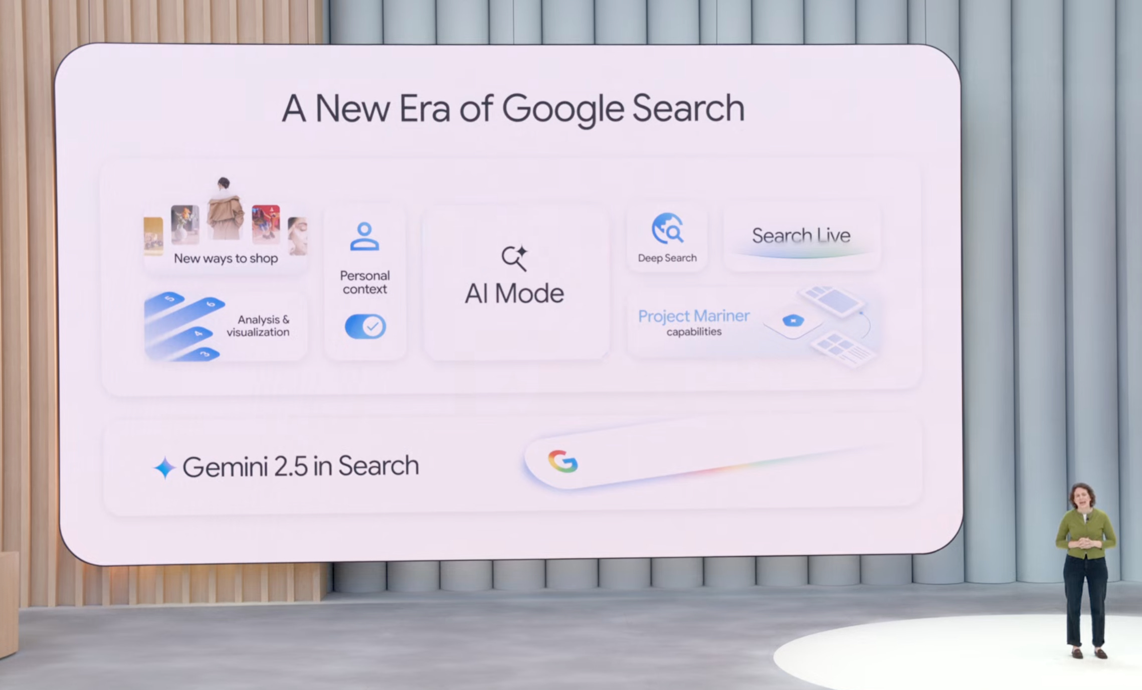 1:50 PM ET: More praise for AI Overviews in Google Search. Google showed off its new AI Mode which takes over the entire search experience and allows for more complex queries. Itโs powered by Gemini 2.5 and is rolling out to all users in the US starting today. Get ready for your grandparents to bug you about why their computer keeps saying AI.