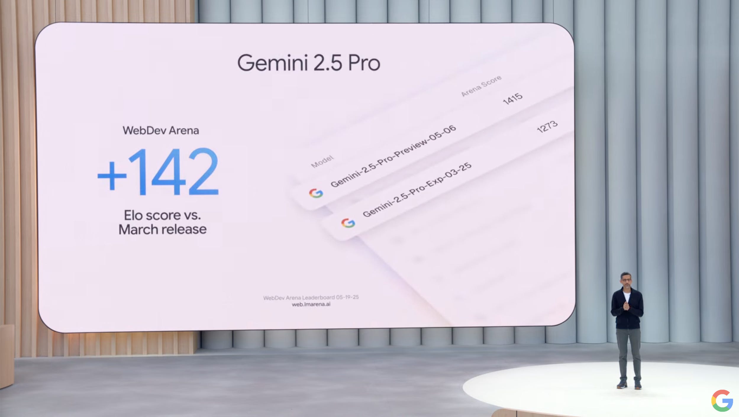 1:04 PM ET: Sundar Pichai has arrived, and heโs talking AI models and the speed at which Google ships them. The company wants to ship them at a โrelentless paceโ to keep up with rapid model progress. It does seem like every other day, Google is shipping a new Gemini model, so this adds up.