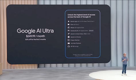 2:37 PM ET: Google is rolling out two new plans for AI: Google AI Pro and Google AI Ultra. The former is $19.99/month and the later is (drum roll please) $249.99/month. One is strictly for consumers, the other is for the most enthusiastic AI users on the globe. Hereโs a breakdown of what you get.