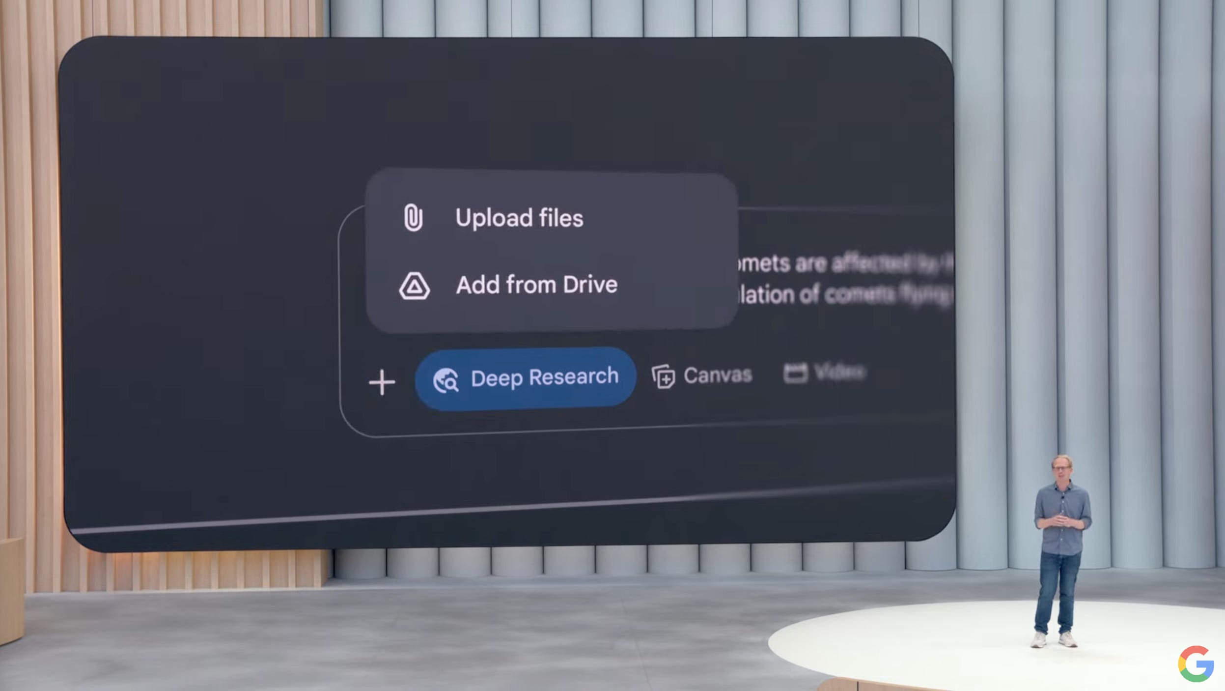 2:17 PM ET: Deep Research, which ties into AI Mode and Gemini across Google services, will let you upload your own files and store them for future reference.