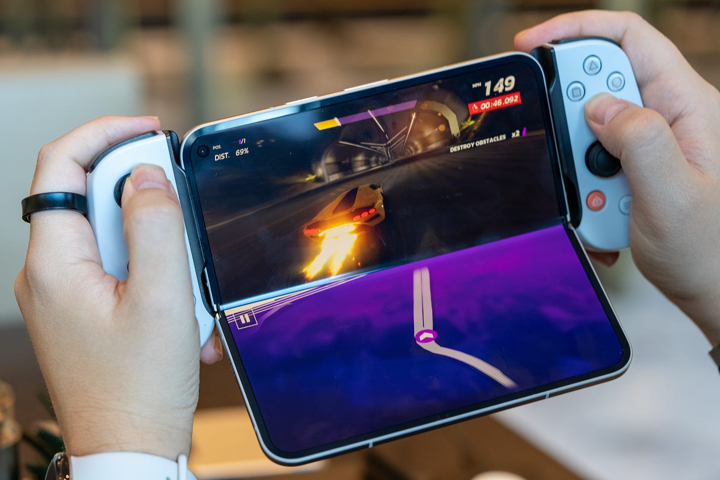 🎮 8-inch gaming delight. That 8-inch display makes it a fantastic gaming phone, and a few developers like Gameloft have begun to utilize the foldable’s tabletop mode. I dig the Nintendo DS-like experience with controls or a mini-map on the bottom part of the open display bent to 90º – even if it’s only supported by a few games.