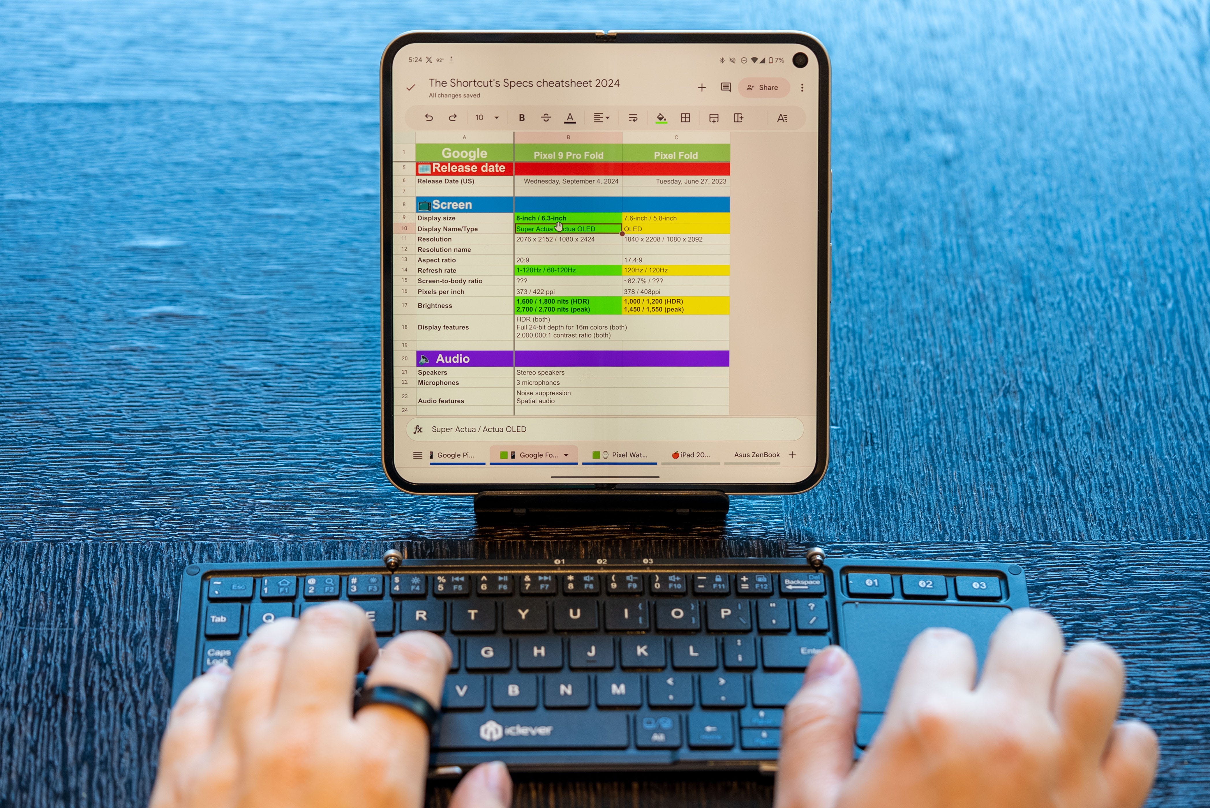 📐 It comes down to the design. Google completely reshaped its book-style foldable to create a truer smartphone feel when the Pixel 9 Pro Fold is closed. That 6.3-inch cover screen is the same size as the Google Pixel 9 Pro, so, to me, using the keyboard and navigating the menus feels natural, not cramped.