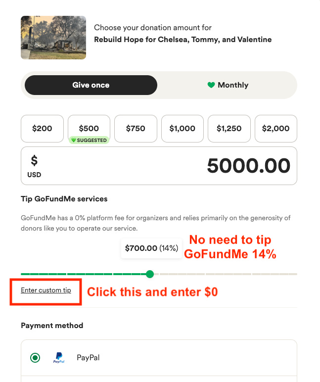 🙅♂️ GoFundMe applies a default 14% tip for itself! You CAN say no thanks to that