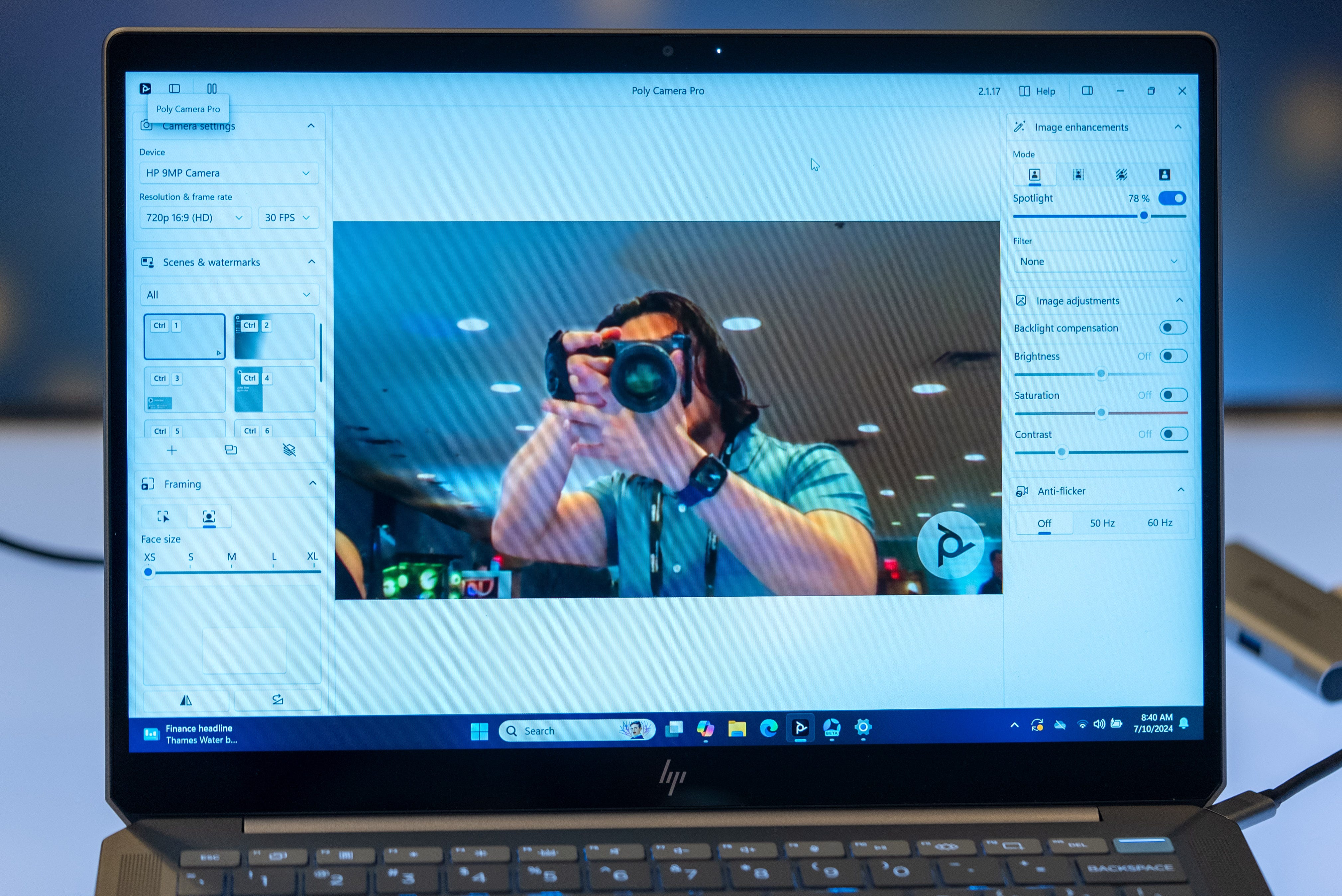 📽️ 9MP selfie camera with an AI cameraman. We’ve seen AI improve web cameras with better blur effects, image enhancement, and even tracking but HP’s new Poly Camera Pro does everything in the best way I’ve seen from any camera app. HP’s auto-framing feature was particularly exceptional. It follows you perfectly even if you’re moving around erratically like a blow-up noodle man. I’ve never seen another webcam track my motions with such 1:1 accuracy and speed. It was so smooth that I swore my webcam was actually moving around on a robot arm.