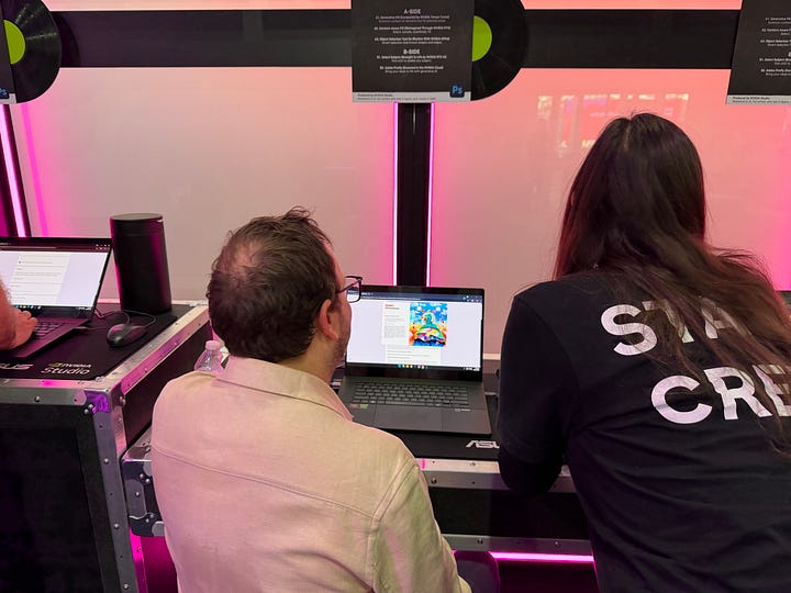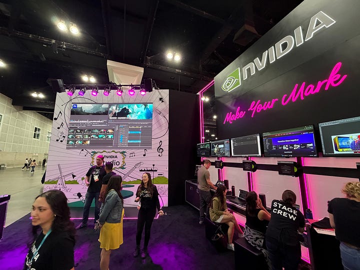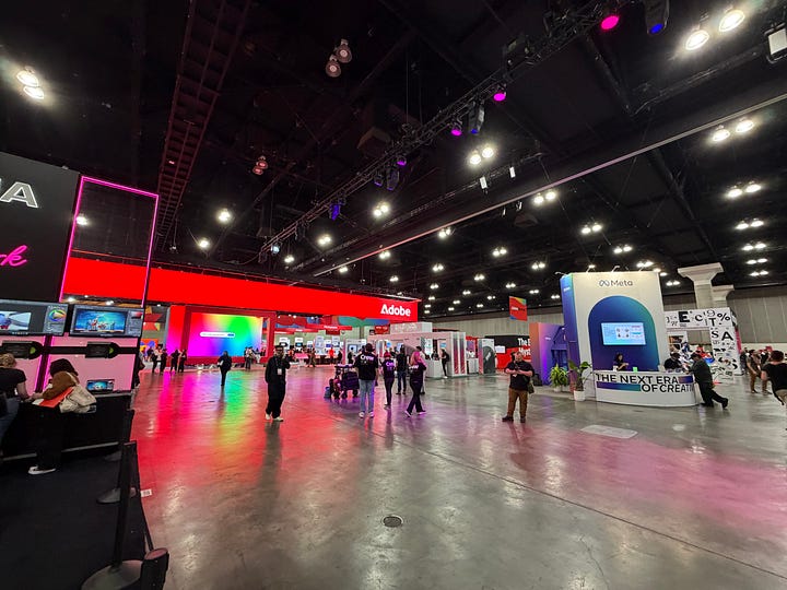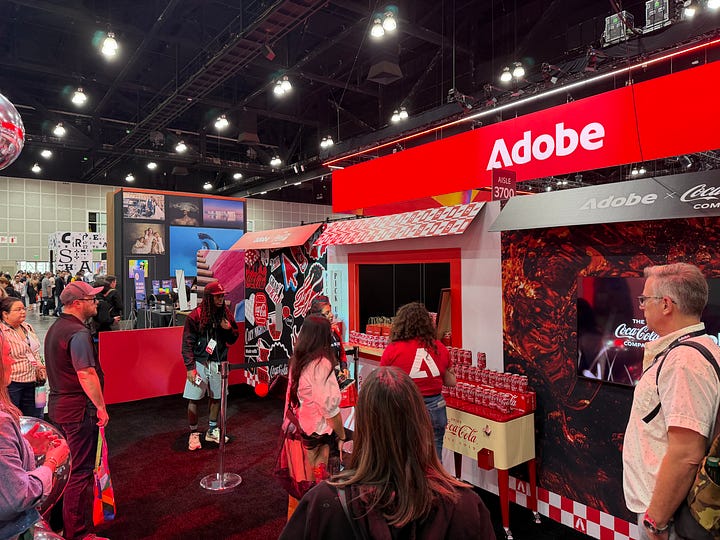 💡 Trade-show tradition with demos galore. Like any good trade show, Adobe MAX had a plethora of exhibitors showcasing new technologies that integrate with Adobe’s products. This year, the company hosted exhibitors at the Los Angeles Convention Center as part of “Creative Park,” with big names like Microsoft, Nvidia, Logitech, and even Coca-Cola making an appearance. It felt like walking through CES (the big tech show held in Las Vegas), except in a much more focused and organized way. Matt and I were fans of the layout and how well everything was spaced out. It was one of the most pleasant trade shows I’ve ever attended.