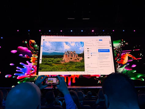 👀 “Sneaks” is absurdly fun. The most fun keynote of them all is Sneaks. It’s Adobe’s annual tradition to give those in attendance (and those watching online) a sneak peek at brand-new technologies and features the company is working on. From wildly impressive object removal to purely-genius audio editing for videos, Sneaks was met with many cheers and gasps from the in-person audience, including from Matt and I. Whether any of the features eventually roll out is unclear, but it was exciting to see what the company is working on regardless.