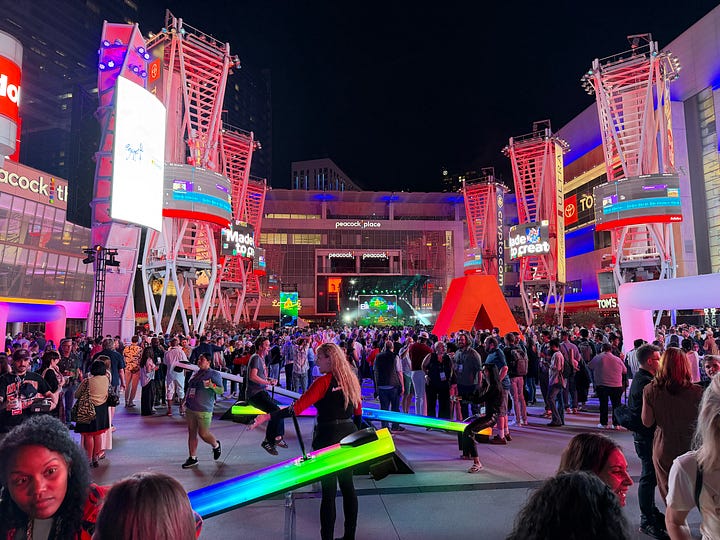 🎉 Having a Bash. No tech event would be complete without a good party. The first night, Adobe hosted us at the Hollywood Roosevelt for a magic show downstairs, then led everyone to the rooftop for food and drinks. The second night, it was time for Adobe’s big MAX Bash, featuring a performance from St. Paul & The Broken Bones. There were a ton of different activities like a human-claw machine and coloring wall, but Matt and I were only there for the seesaw.