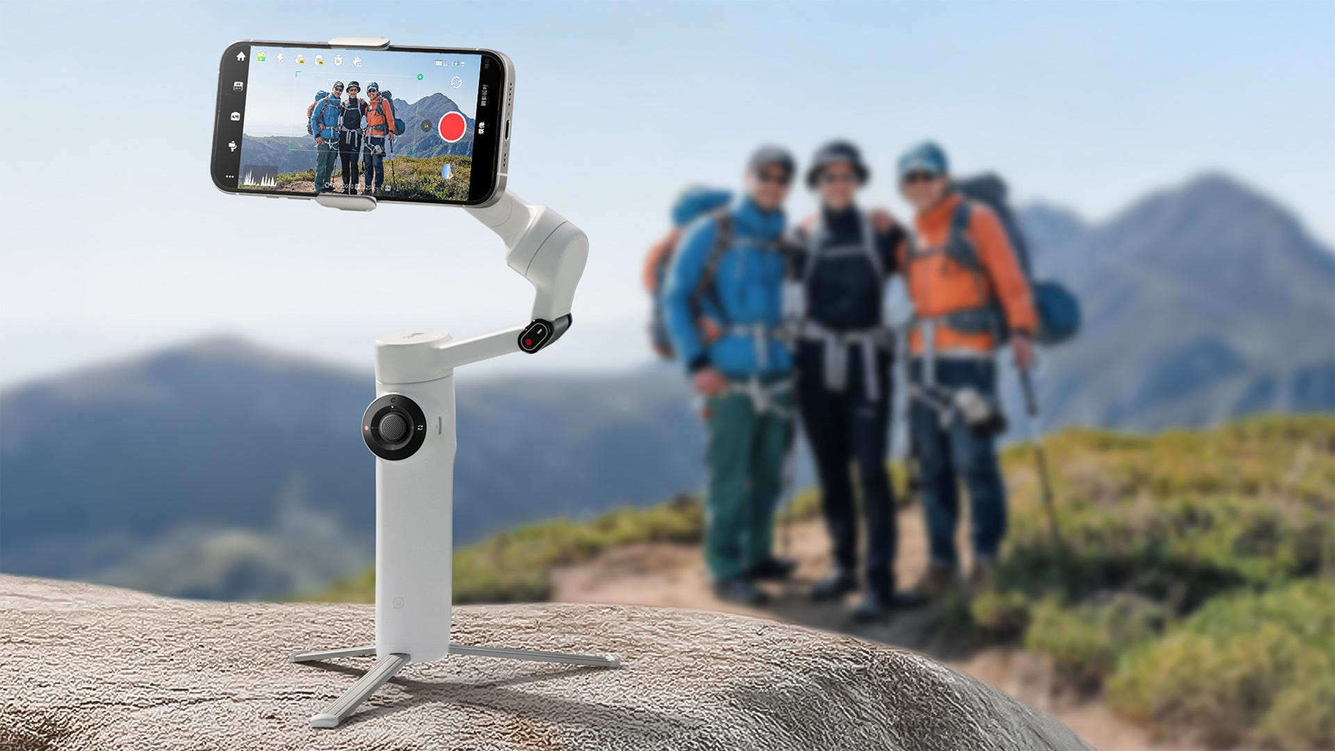 🦾 Features 3-axis stabilization, built-in tripod, and selfie-arm