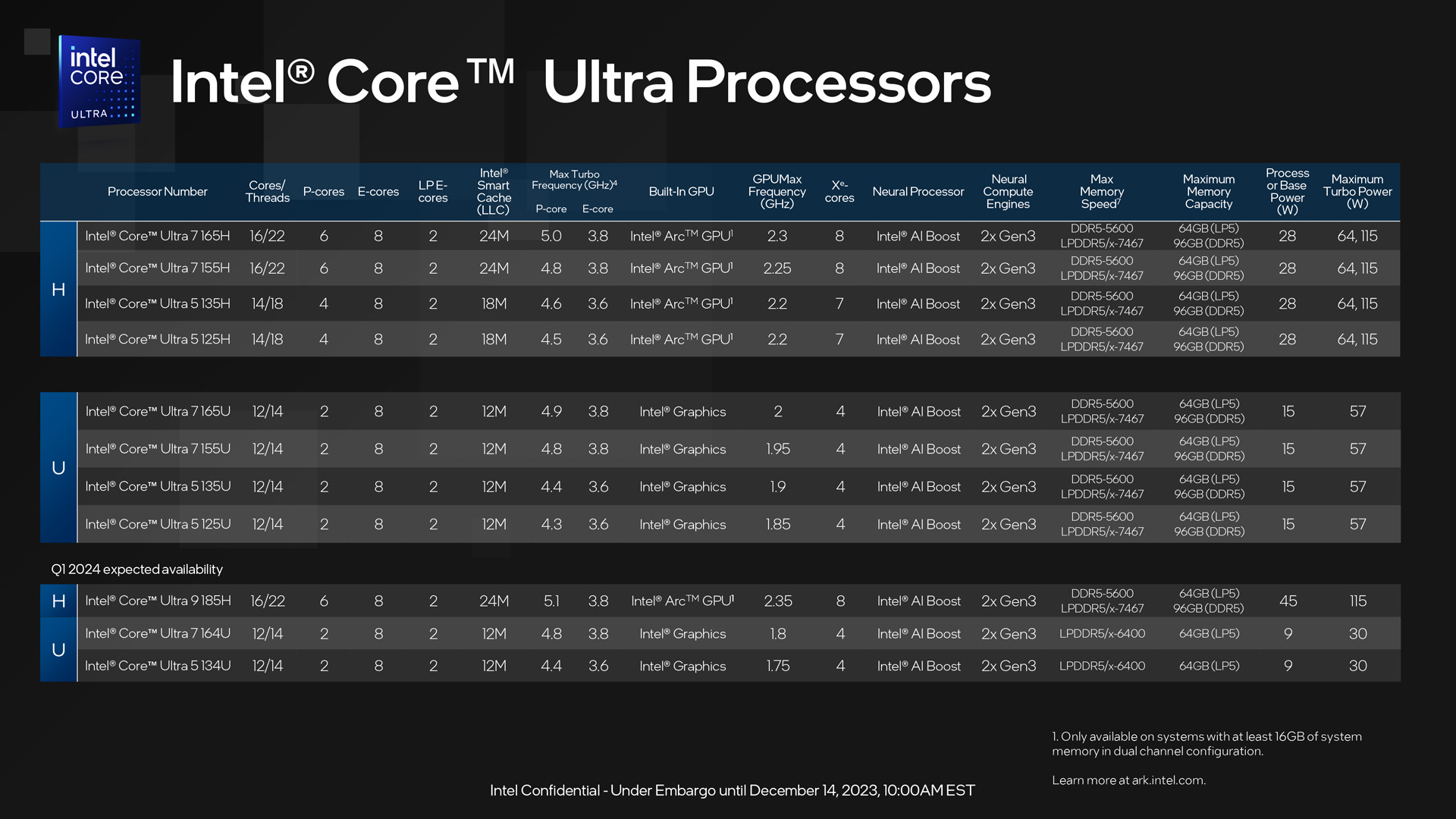 Intel Core Ultra also boasts a number of platform upgrades including support for up to 64GBs of LPDDR5 memory, Thunderbolt 4, integrated Wi-Fi 6E, Bluetooth 5.4, HDMI 2.1, and DisplayPort 2.1