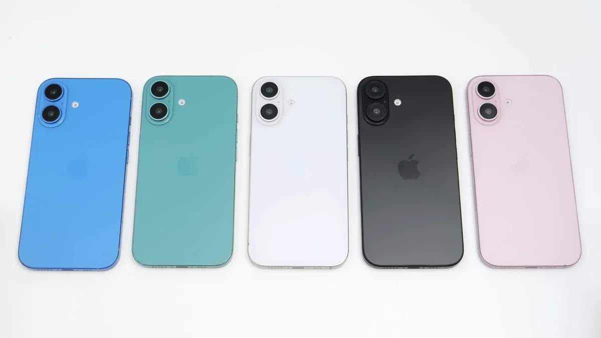 The video from Aaron Zollo of the Zollotech YouTube channel features a set of iPhone 16 dummy models in five colors: black, white, blue, green and pink. The colors are more vibrant than last year’s iPhone 15 colors, which were rather pale and infused into the glass.