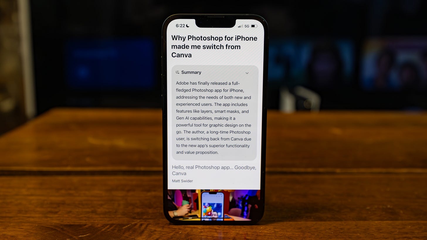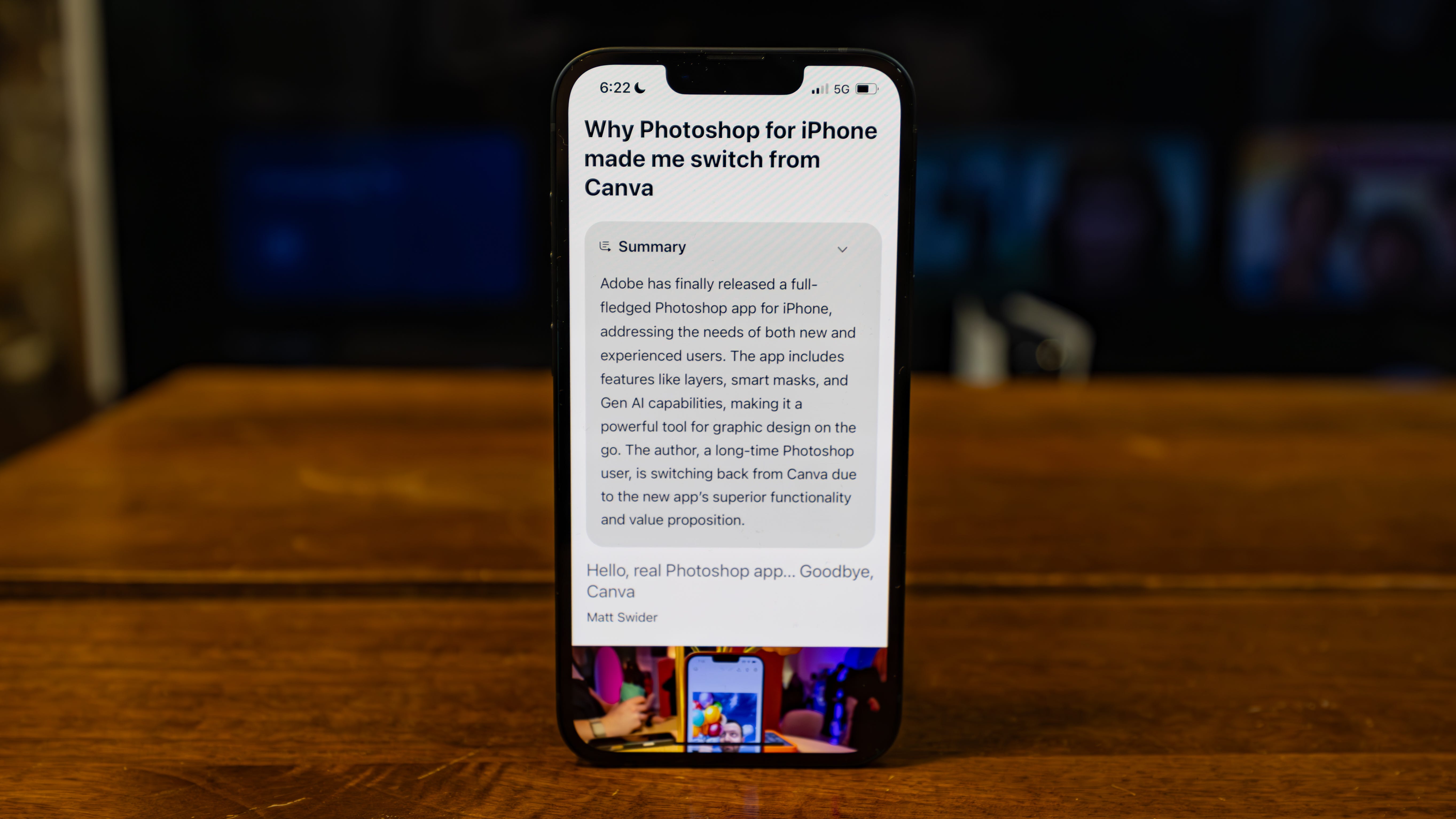 🧠 Apple Intelligence. The key benefits for my parents’ iPhone 16e phones are notification and Mail summaries. This makes things easier to read at a glance (even if comically wrong occasionally). Apple’s AI Writing Tools might have been helpful before my dad retired, though I’d also be out of a $5 per email rewrite allowance as a kid. They’ll still find summaries helpful in Safari (pictured above).