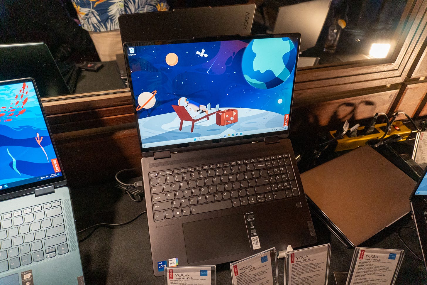 The Yoga 7, meanwhile, is essentially the 16-inch Yoga 7i, but with AMD’s Ryzen 7000U series processors, a dialed-back 1920x1200 display, and half the storage at 512GB.
