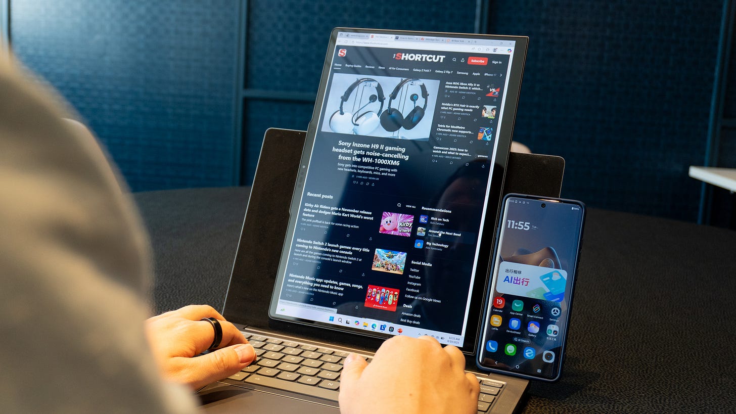 Youāre stuck with some dead space on the left and right after you rotate the display upwards, but Lenovo has a way to maximize it (kind of). Using the Smart Connect app, you can pair your smartphone and laptop to transfer files and mirror your phone on the laptop screen. Neat.