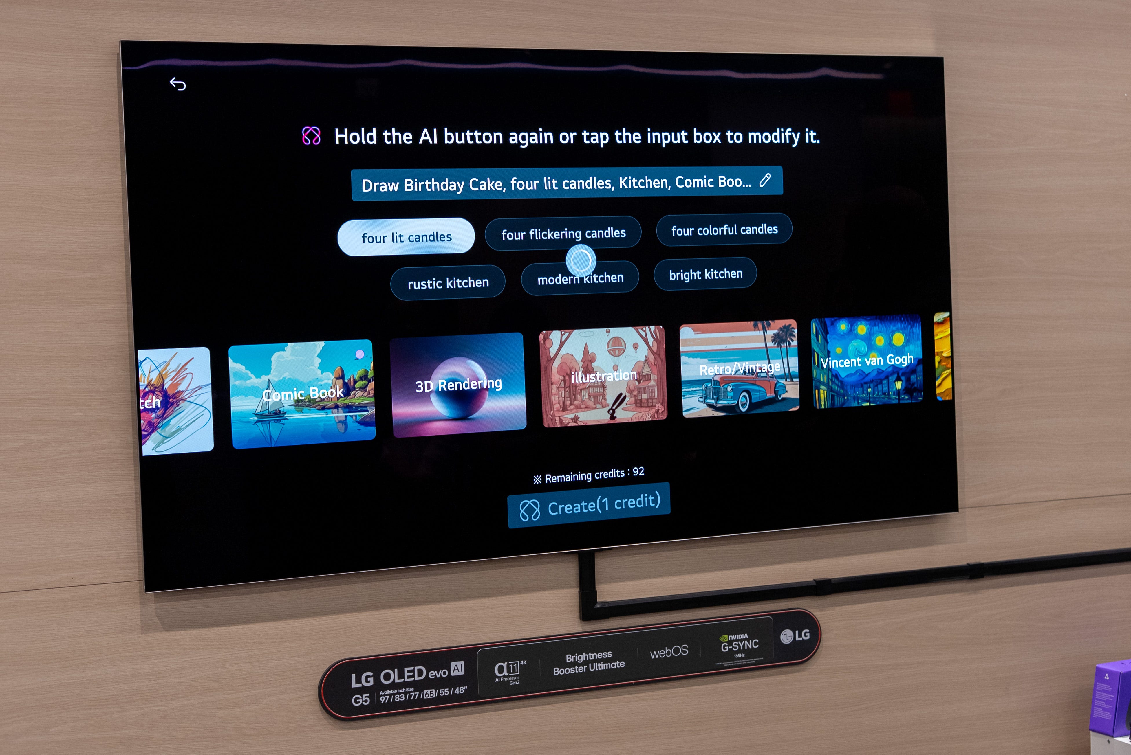🤏 Thinner than a picture frame. The LG G5 hugs close to the wall more tightly than any other TV I’ve ever seen. That’s due in large part to LG’s one-wall design and just how absolutely thin it is. The TV measures only 0.3 inches thick, making it even thinner than most picture frames or even a painting canvas. Interestly, LG is adding a new Always Ready mode that will display AI generative art, so it could be a new competitor to the equally thin Samsung Frame Pro TV.