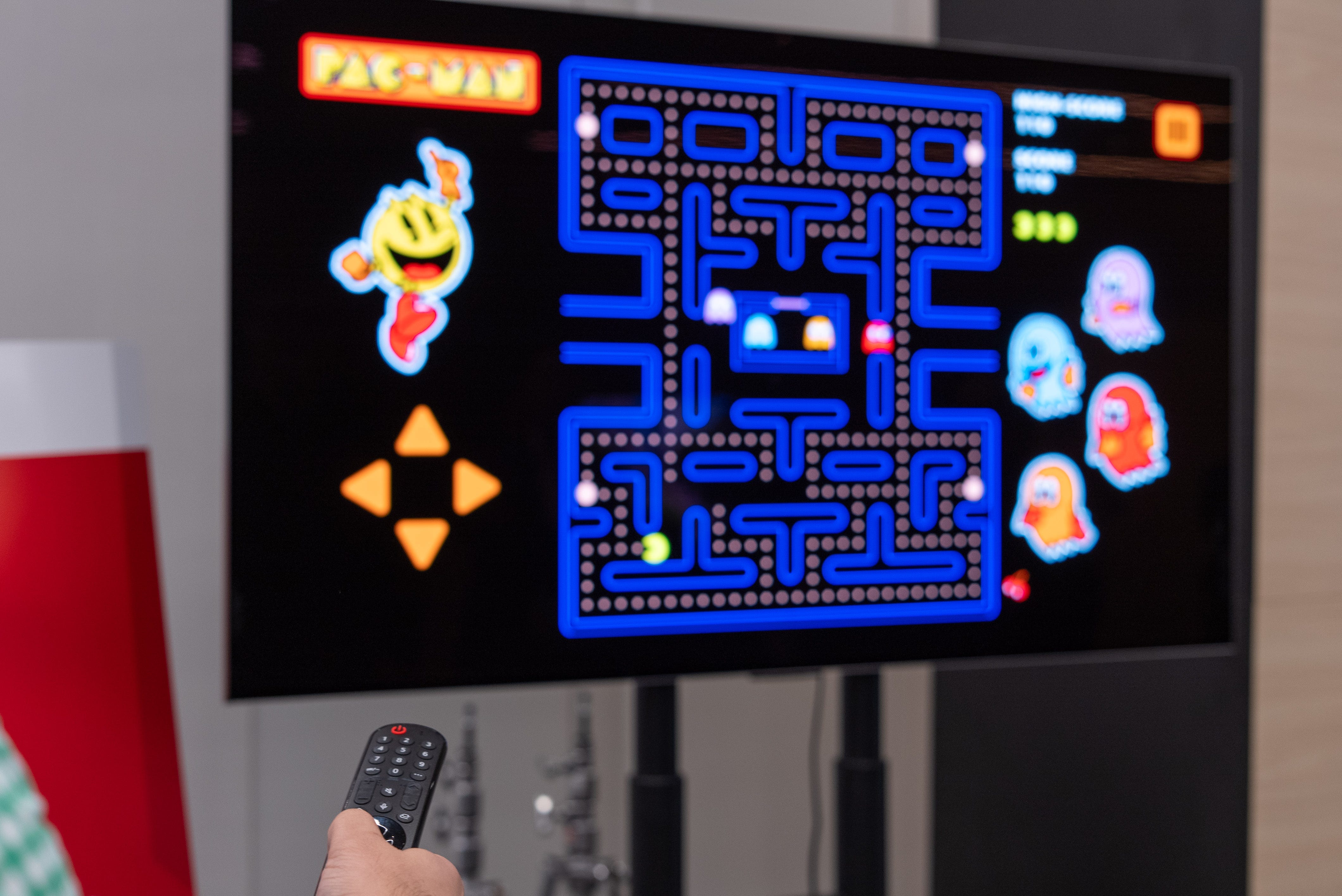 🕹️ Game Portal. LG is also tripling down on gaming with a new Game Portal. It’s basically a new hub for streaming games and games you can play with just the remote control. We got to play Pac-Man with the remote. There are also other classics like Wheel of Fortune, Tetris, and SpongeBob SquarePants Bounce. LG also says it will add Xbox Cloud Streaming to its TVs soon, where it will join Nvidia GeForce Now and Amazon Luna, among other services.