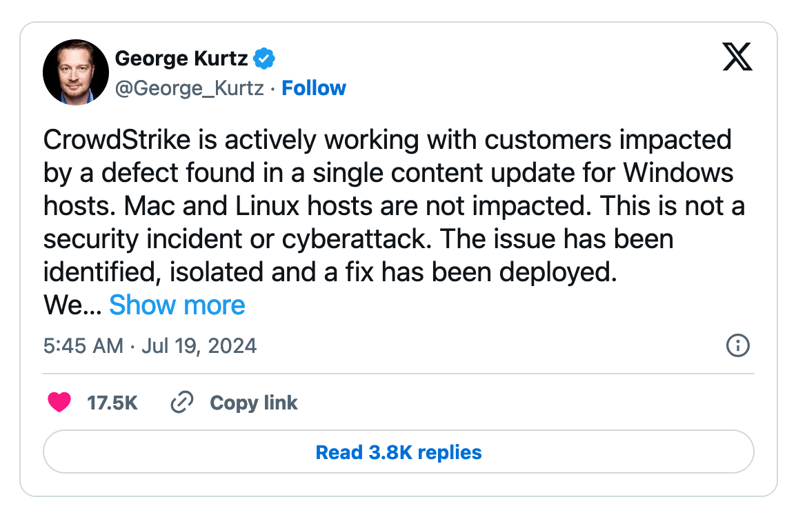 Fixing the Crowdstrike error is ongoing, but the impact of today’s delays – and the money lost – is going to have severe implications for weeks to come. Even as some backend IT systems and services come back online (Xbox Game Pass is live again), others are going to be in recovery for all of July. Case in point: your Starbucks mobile orders remains in limbo right now.