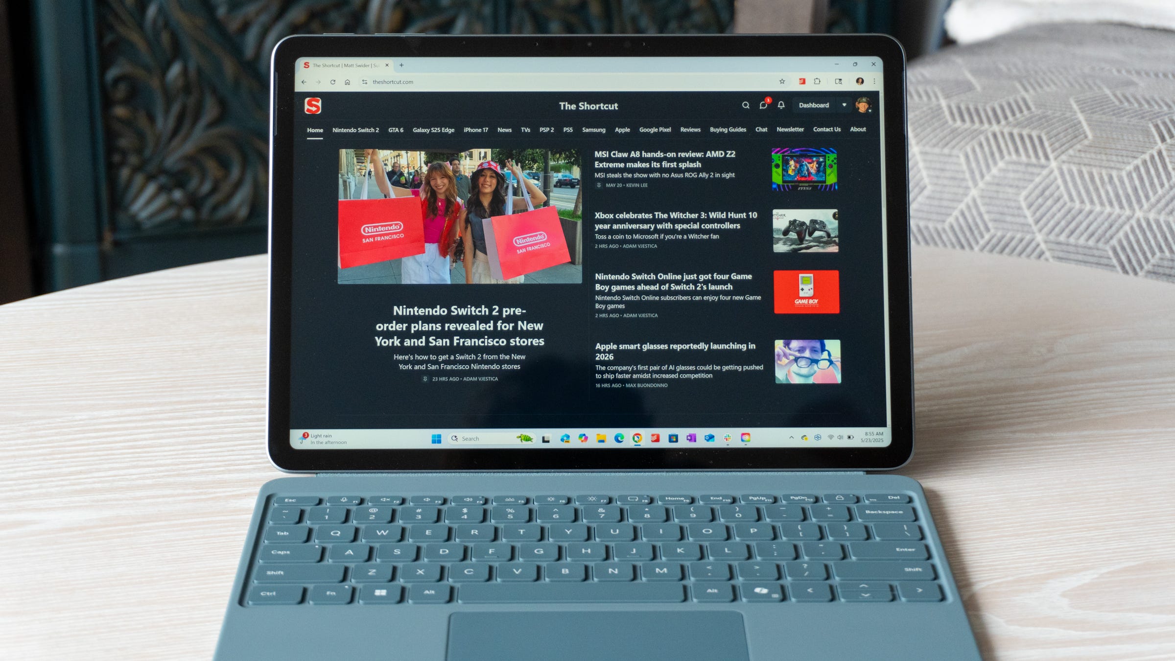 â¨ď¸ Comfy keyboard thatâs a lot more durable. I like Microsoftâs new Surface Keyboard for the 12-inch Surface Pro. Itâs a slight revamp compared to the Surface Pro Flex keyboard thatâs available with the higher-end 13-inch Surface Pro, complete with an Alcantara finish on the outside and more durable palm rests on the inside. The keyboard itself offers a solid amount of travel with a satisfying thud with each key press. You can still adjust it to lie flat on a desk or prop it up at an angle, too. The biggest change is the lack of a home for your Surface Slim Pen - thatâs moved to the back of the Surface Pro itself. The keyboard is now just a keyboard, which keeps it super slim and lightweight. Plus, thereâs a backlight for typing at night.