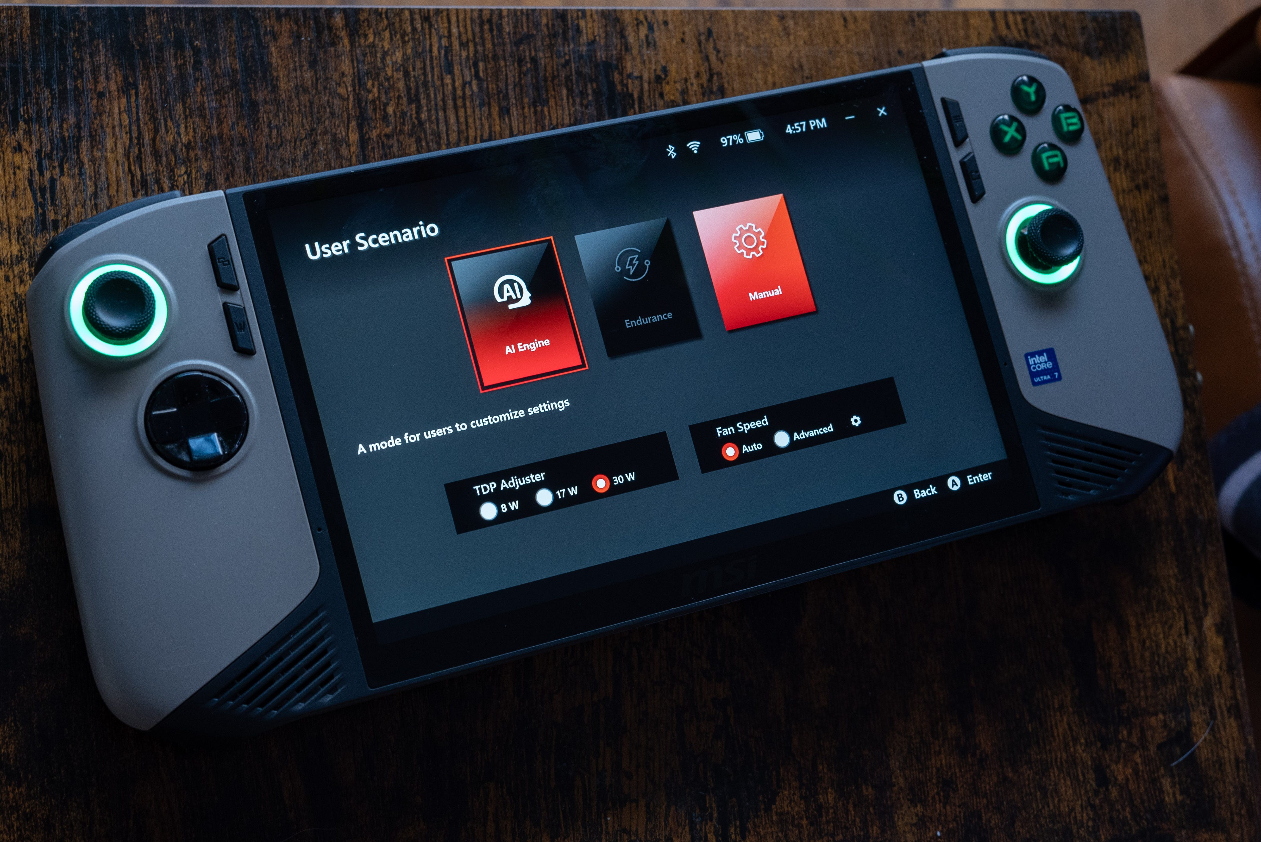 🔋 Battery life you need, power you want. The MSI Claw’s most impressive feat is its 80Whr battery can give you three hours of AAA gaming. That doesn’t sound like a lot, but that’s an hour more than you get with the Asus ROG Ally X and its equally large battery. It’s all thanks to how the Claw 8 leverages MSI and Intel’s AI to balance power consumption and performance as running this handheld at its full 30W power mode only provided two hours of AAA gaming time.