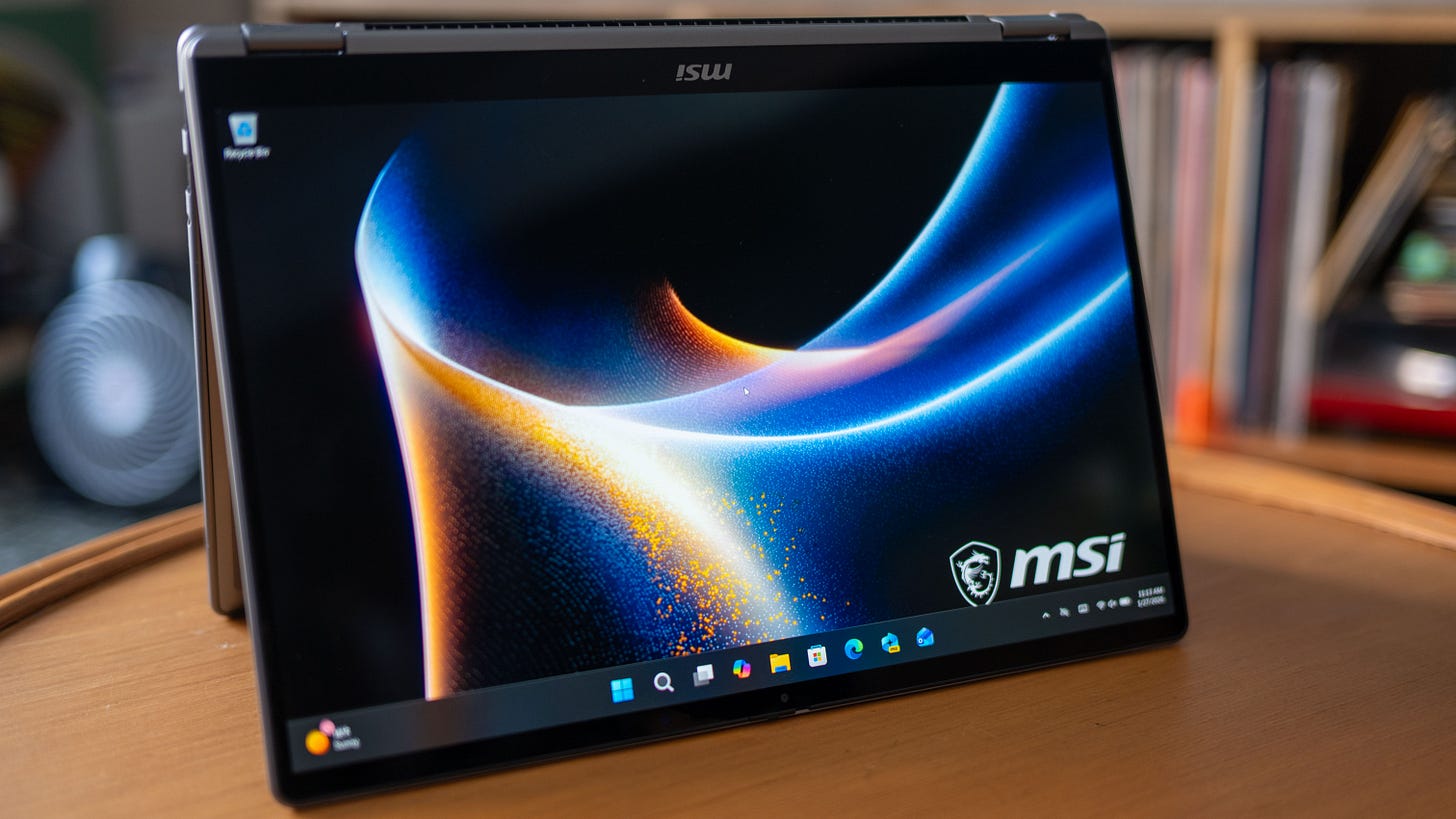 While there’s a lot to like about the MSI Prestige 14 AI+ Flip, especially for its $1,299 price, there are some glaring compromises MSI has made to lower the cost of this machine. Namely, the OLED screen delivers great contrast but is hampered by a 300-nit peak brightness, a pedestrian 60Hz refresh rate, and HDR that only works for video. There’s a more expensive, larger $1,549 16-inch MSI Prestige 16 AI+ Flip that fixes these problems with an HDR 600 display and a higher 120Hz refresh rate. But for just a little more than a MacBook Air, MSI has delivered on one of the best Windows 11 laptops of 2026 so far.