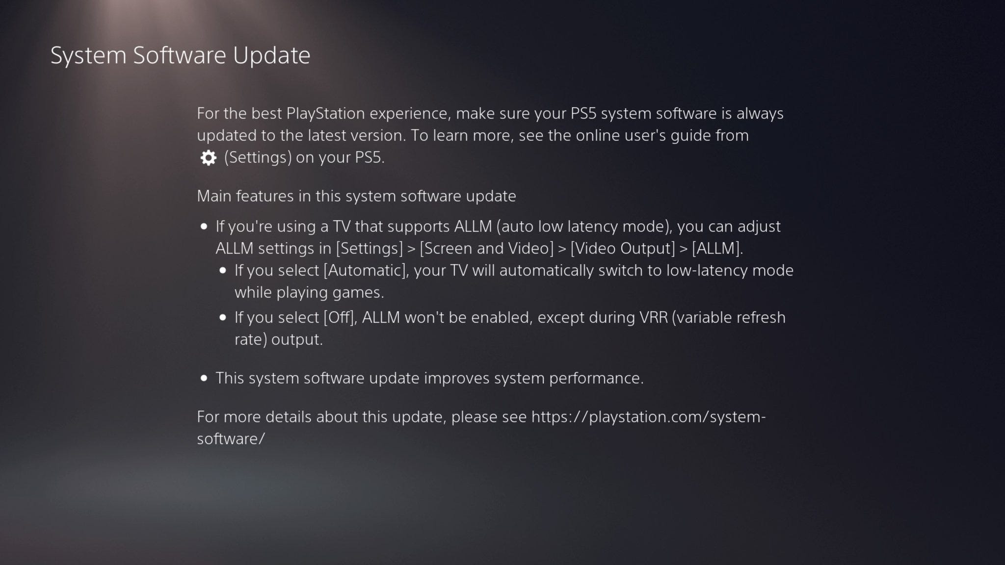 A new PS5 update – 22.01-05.50.00 – is now available. It addresses a frustrating issue that arose after Sony added auto low latency mode (ALLM) to the console back in April.
