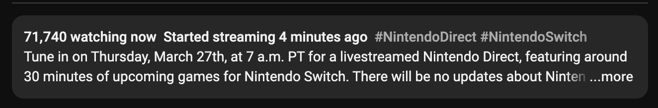 10:02 ET: Nintendo just reminded people there’s another Direct coming which will focus on Switch 2. Yeah, we know, Nintendo. We know.