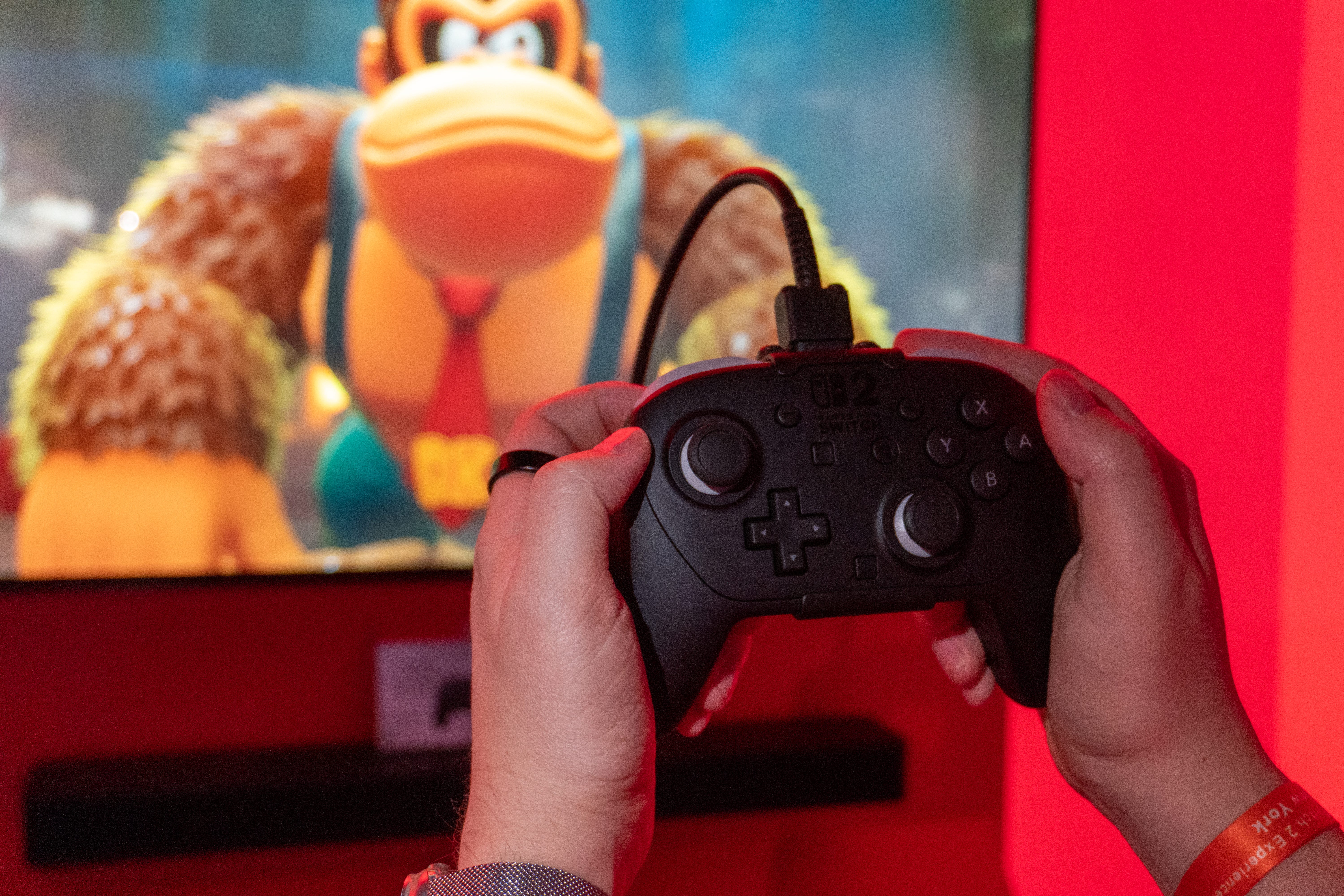 👀 4K docked to a TV is a sight. My sore eyes, for eight years, were trained on a 4K TV playing my 1080p-capped Switch 1 in TV mode. What a waste of pixels on all of the TVs we review! So, I was thrilled to play nine games on Switch 2 in TV mode using 4K TVs at Nintendo’s event – there were four times the pixels in the highly animated Mario Kart World and Donkey Kong Bananza.