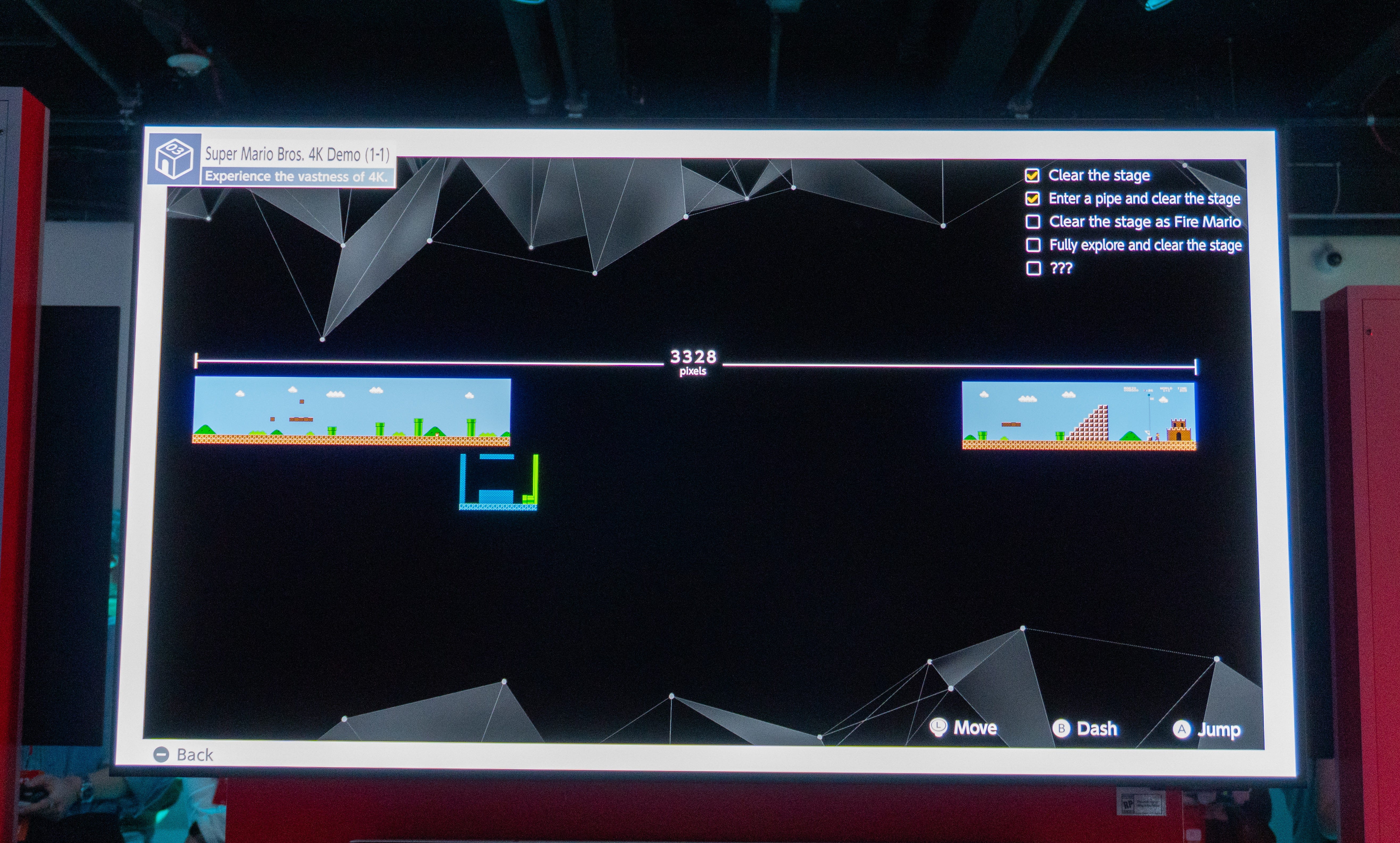 🍄 Mario 1-1 like you’ve never seen it before. I did appreciate one game: the first frame of Super Mario’s classic World 1-1 on a postage-sized stamp to showcase the extra pixels 4K provides. The rest of the screen is in black until you move rightward (or down the fourth warp pipe), shining a light on your linear progression while the entire level stays in the TV frame.
