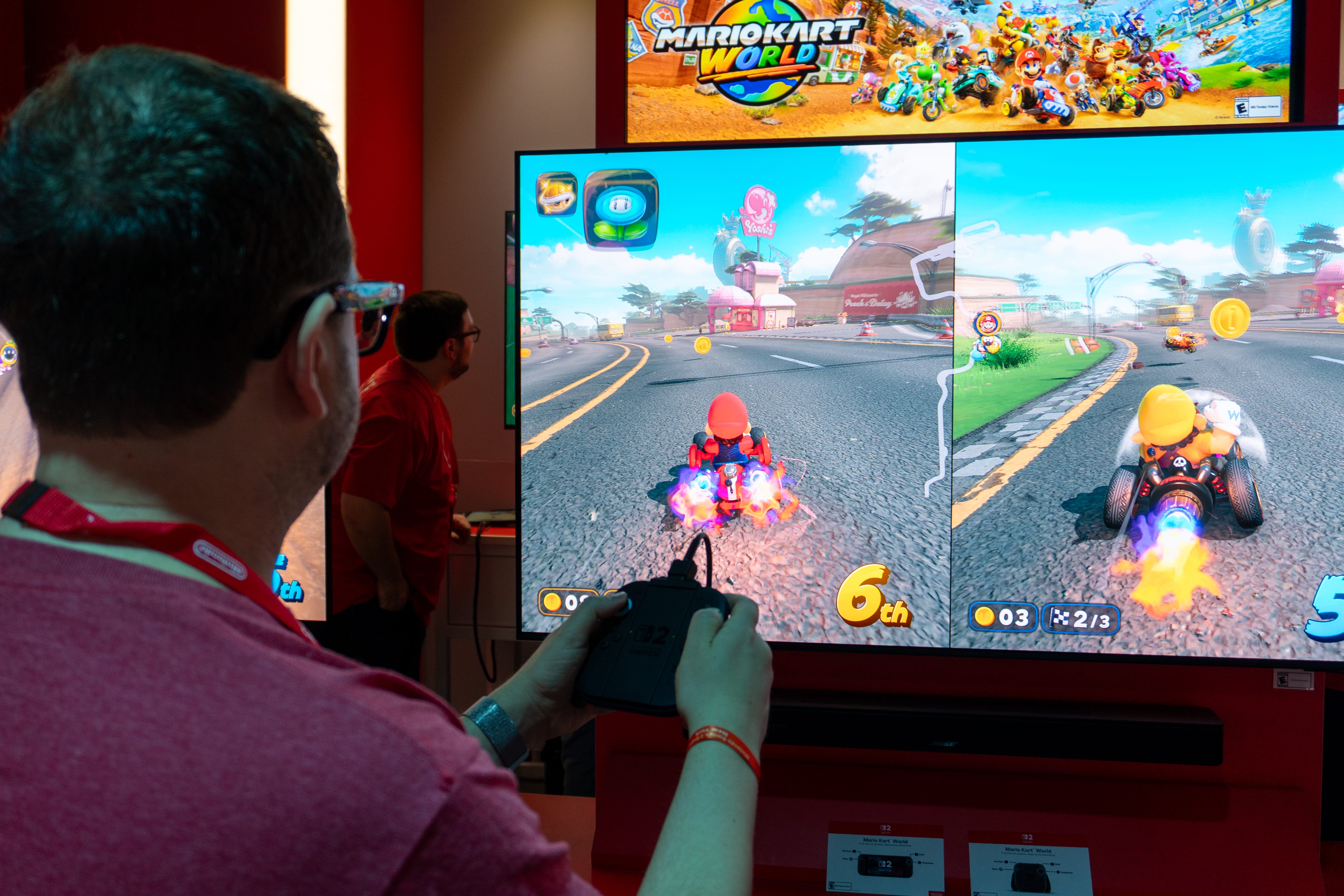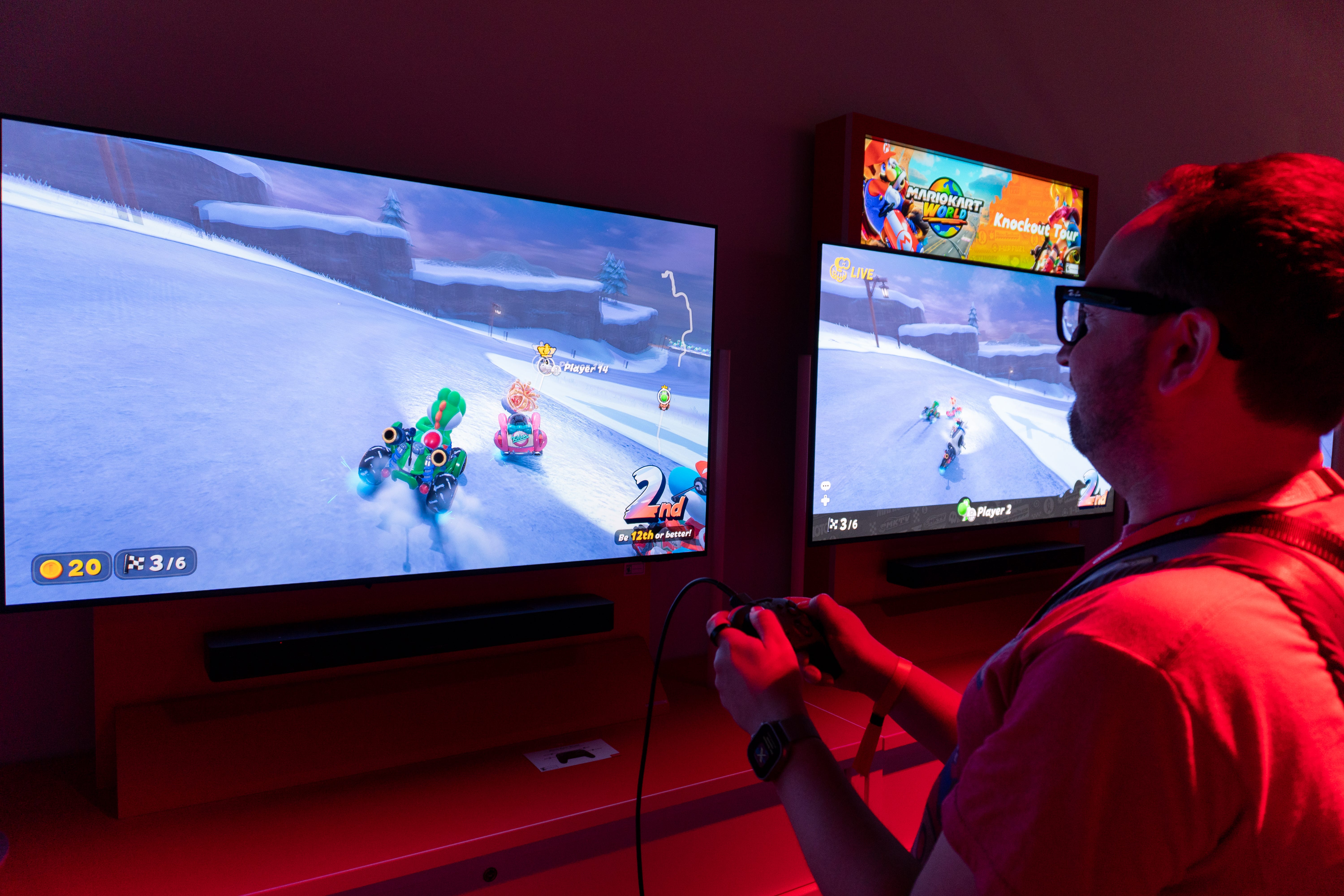 🤯 24-player Knockout Mode is an instant Mario Kart classic. It’s chaos. Pure chaos at every turn. Nintendo set us up with the new 24-player Knockout Mode, which eliminated groups of lagging drivers at various track checkpoints. You could hear audible “Noooo!” screams every time a group of people got eliminated or a blue spiny blue shell or Bullet Bill weapon knocked over lead players. It reminded me of the mayhem invited by Fall Guys, but on go-karts. There’s so much pressure not to be left behind and so many banana peels everywhere. I can’t wait to play more.