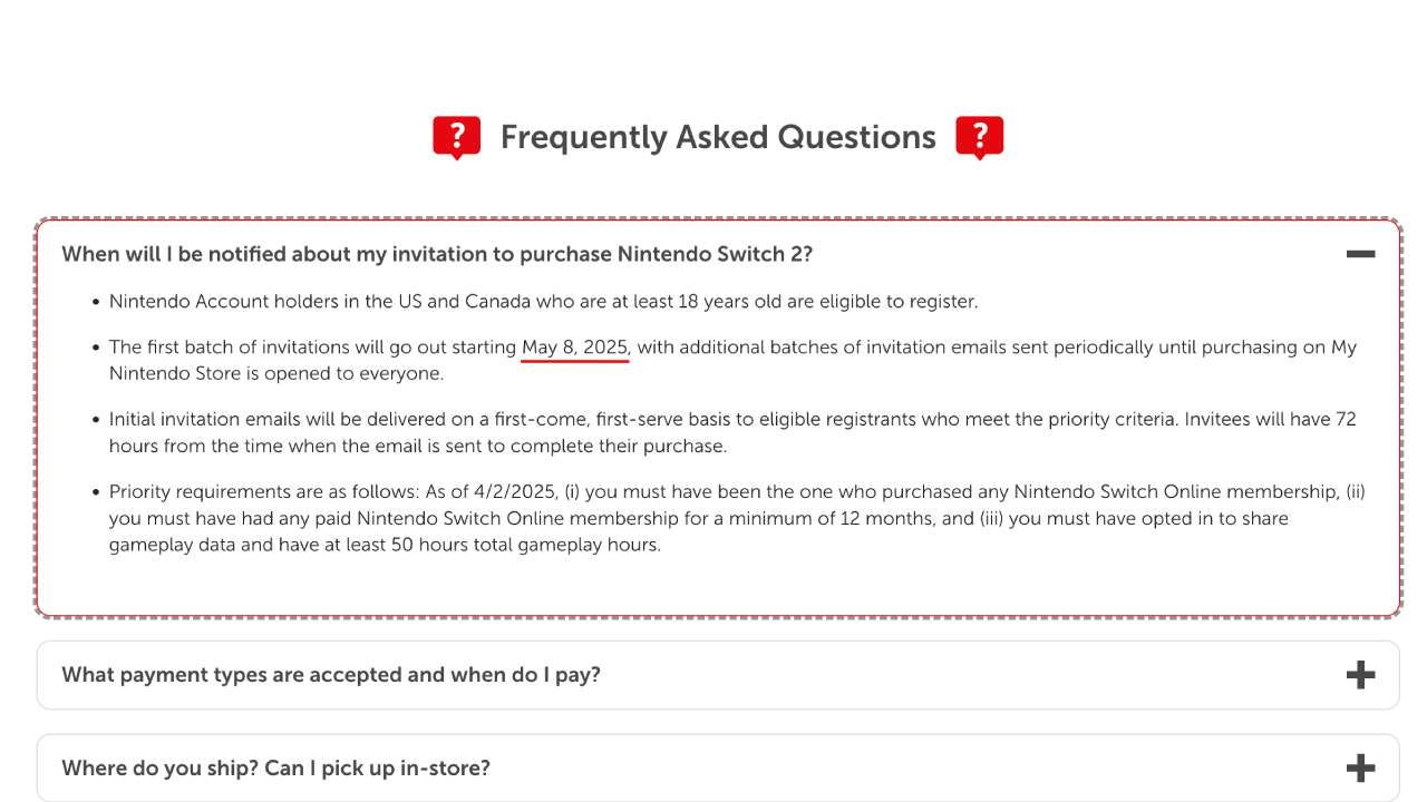 Nintendo Switch 2 pre-order date prediction #3: May 8
