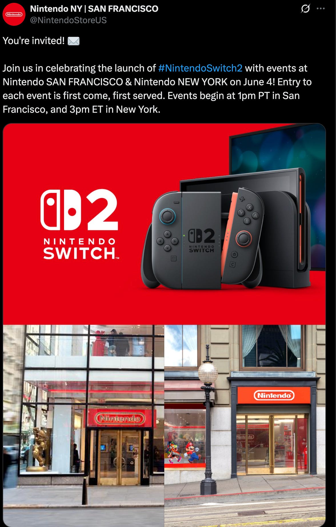 👀 Nintendo has revealed Switch 2 launch plans for its New York and San Francisco stores, with in-person events starting June 4